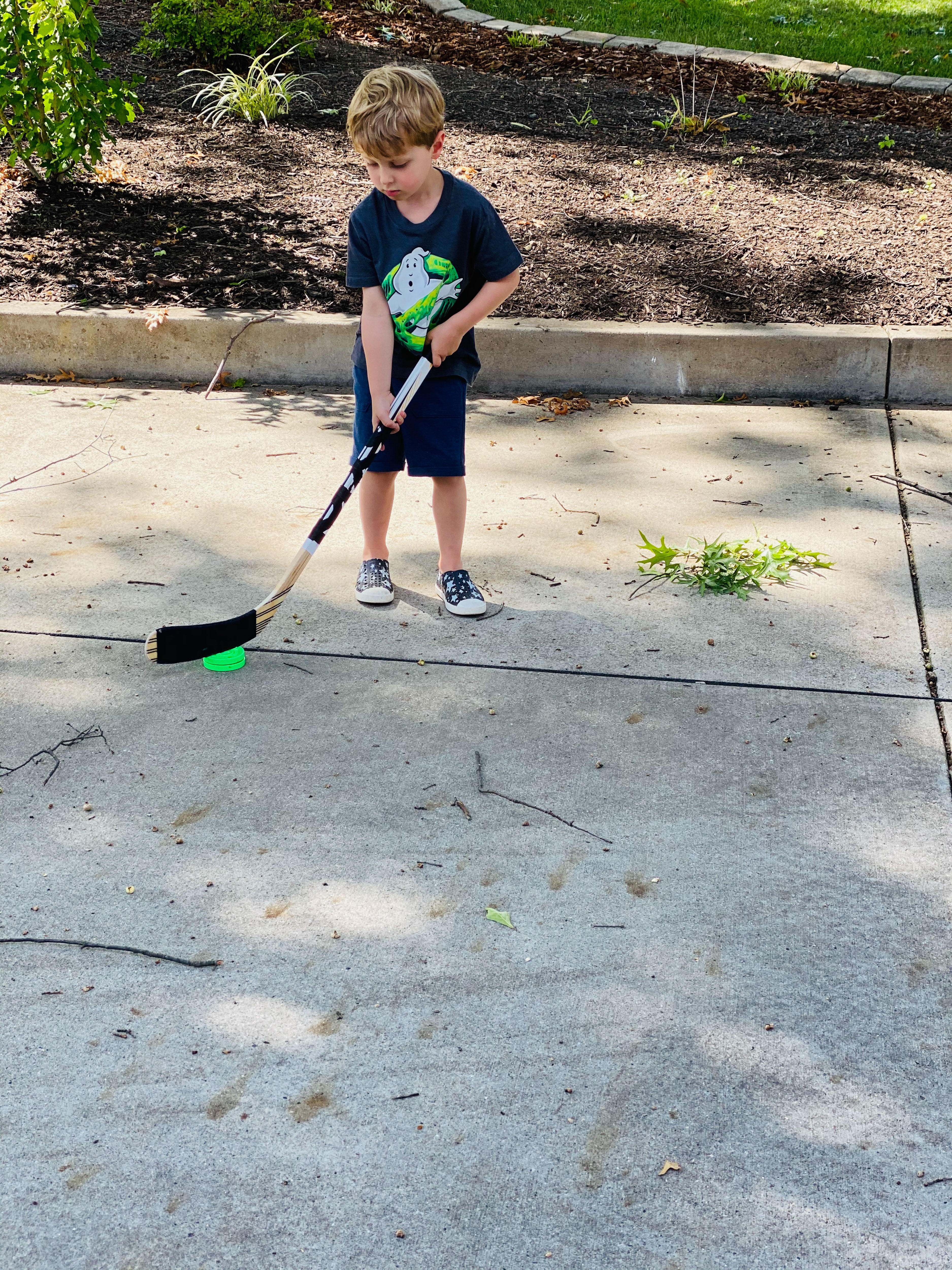 Working on hockey skills. If you couldn’t tell by now, Max is really into ghostbusters.