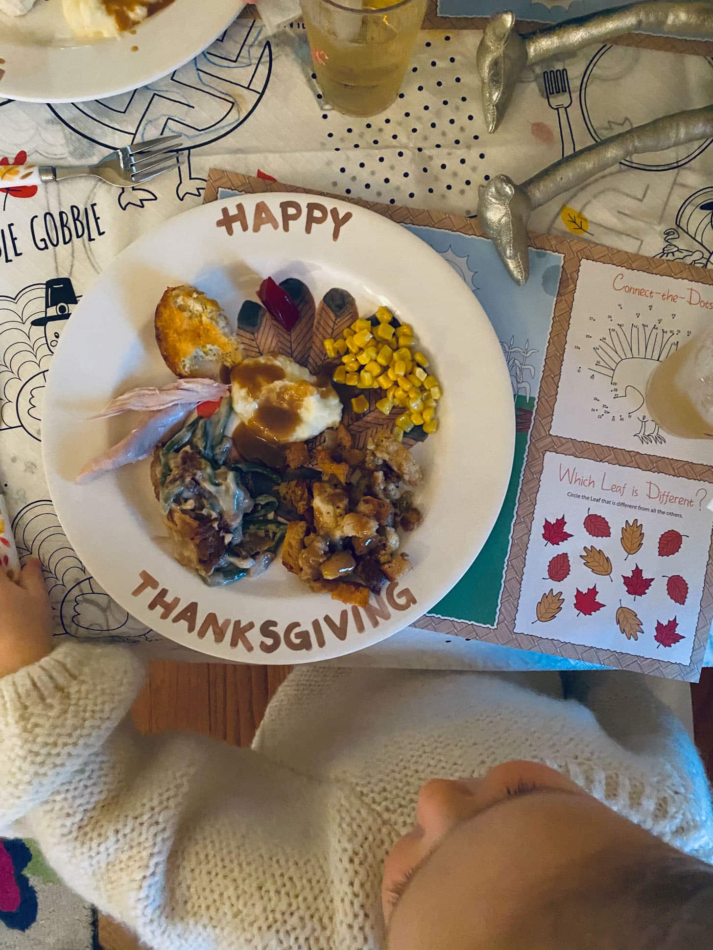 I love the tiny fleck of cranberry sauce on the kids table plate!