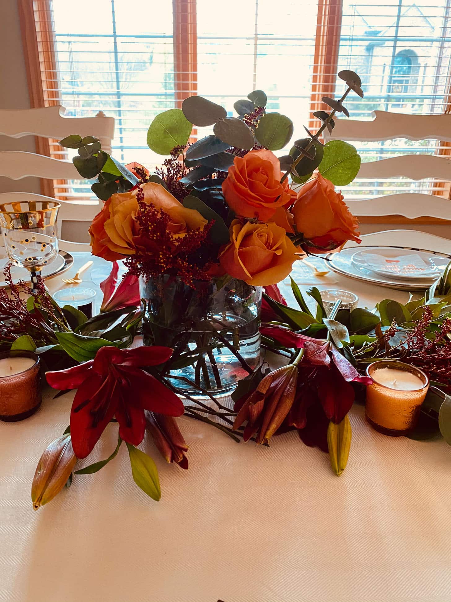 Trying to assemble somewhat of a fancy centerpiece for us! Our usual gathering isn’t HUGE (maybe like 15 people?) but we cut it down to just 4 with the kids.