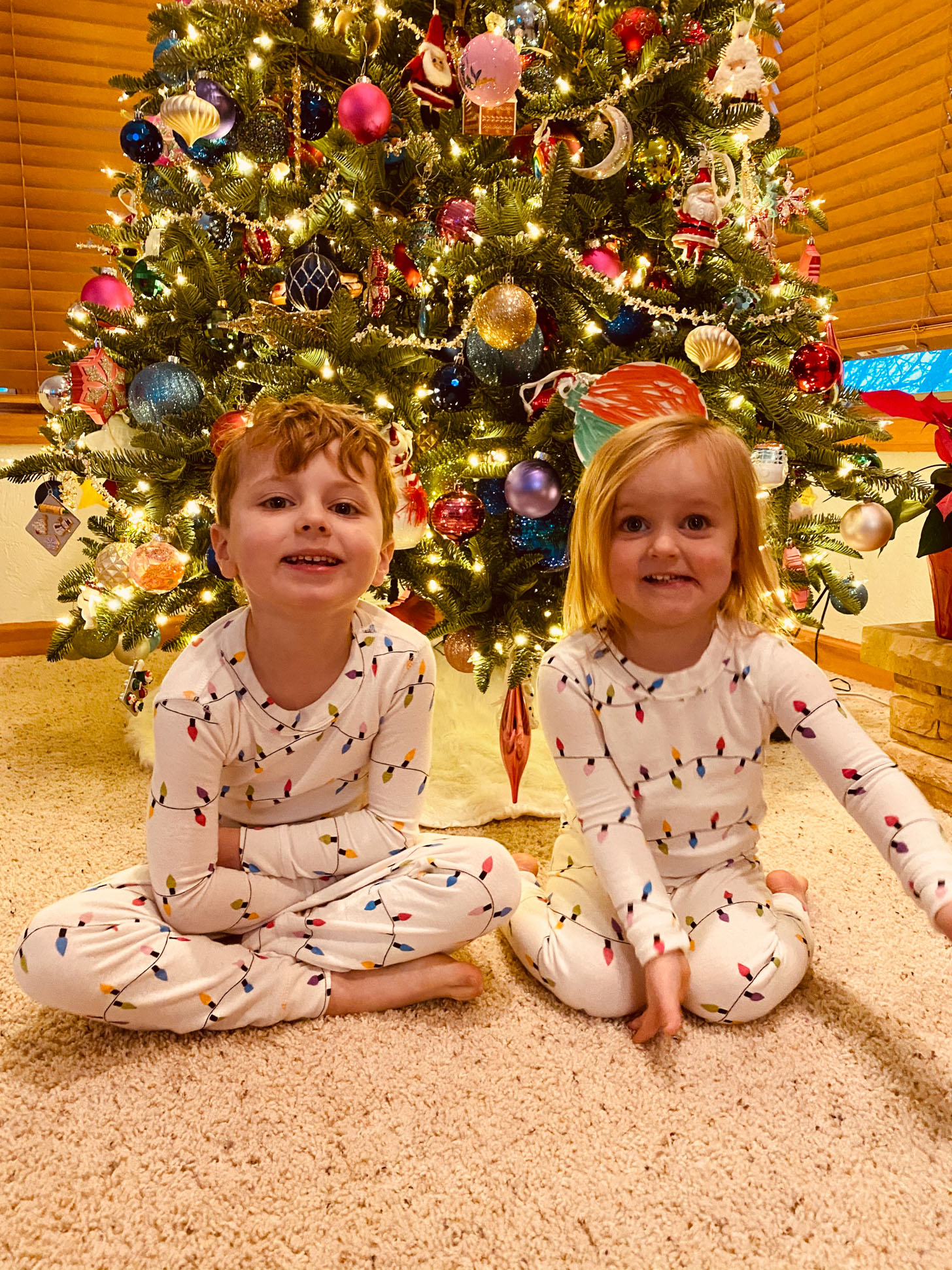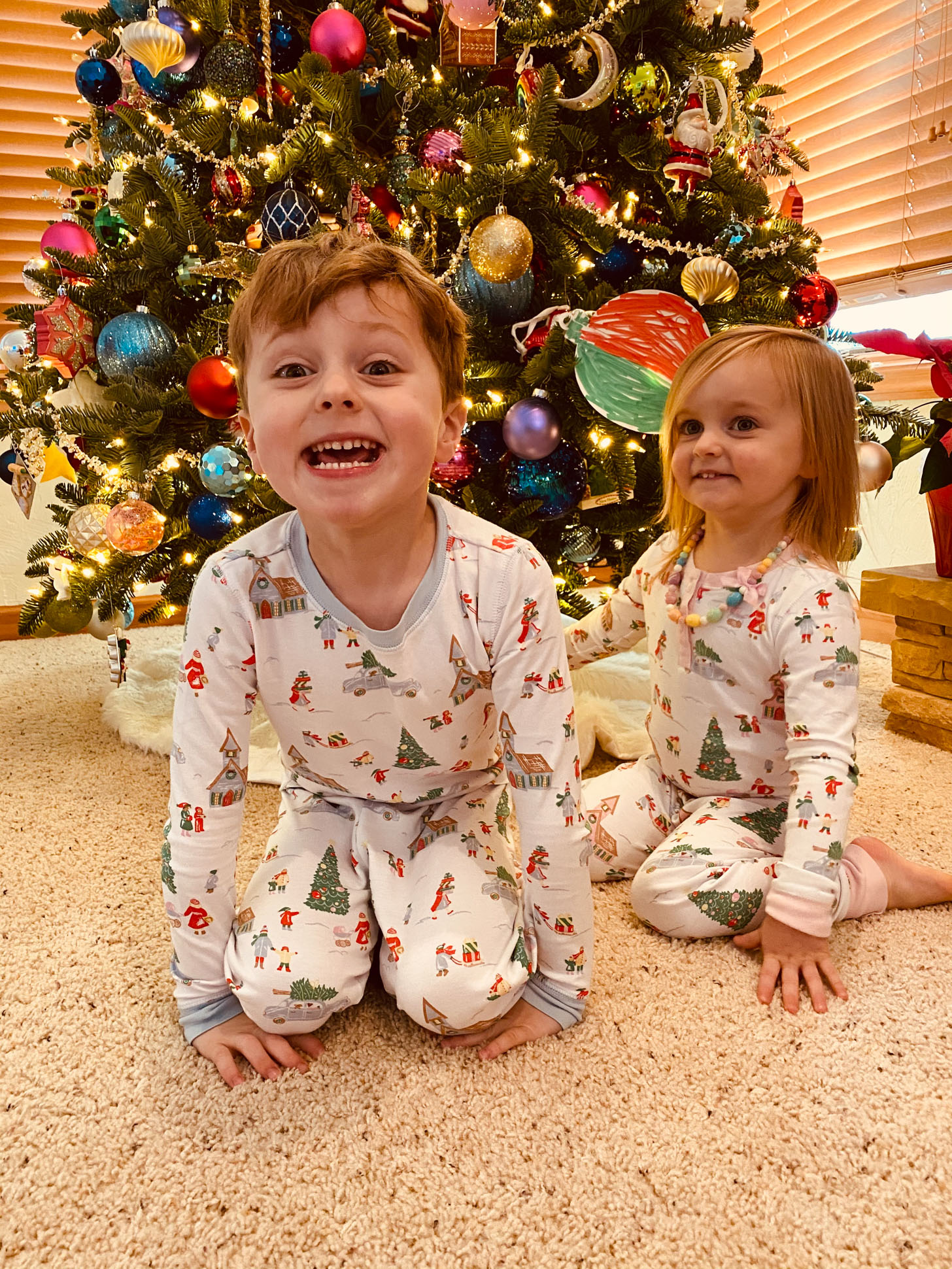 Congratulations on baby #3! Love all their Christmas pj’s. I’m with Emilia, I think the lights were my favorite ones too. Loved her Christmas dress. Hold out hope he will be that excited next year. Especially to keep the magic alive for Emilia and the new baby.