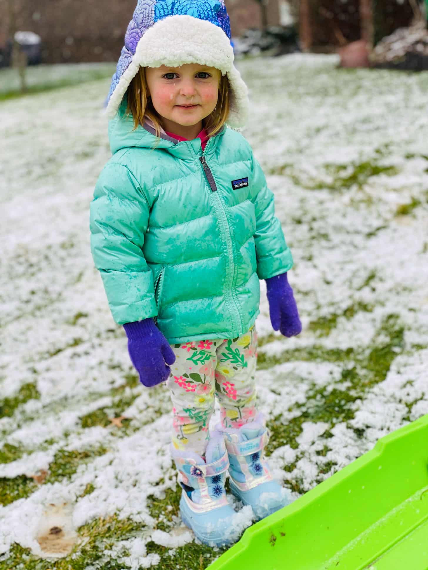 Got a dusting of snow! Emilia was not impressed.