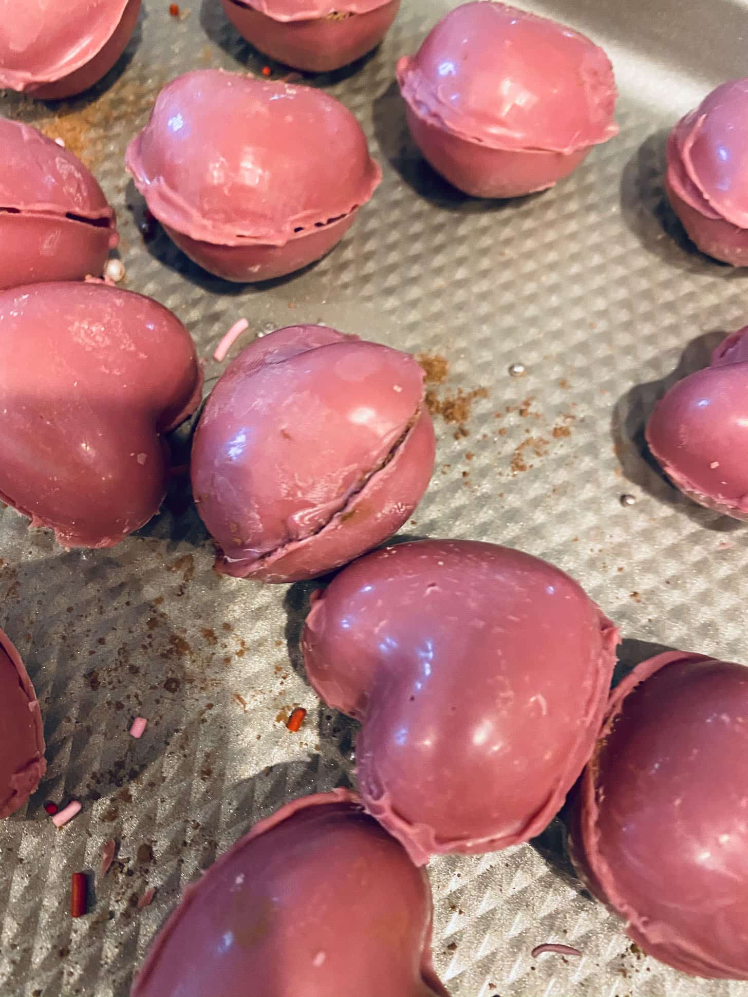 First recipe fail of the year! Attempting to make heart hot chocolate bombs. HAHAHAHA. They looked like trash. Tasted good though.