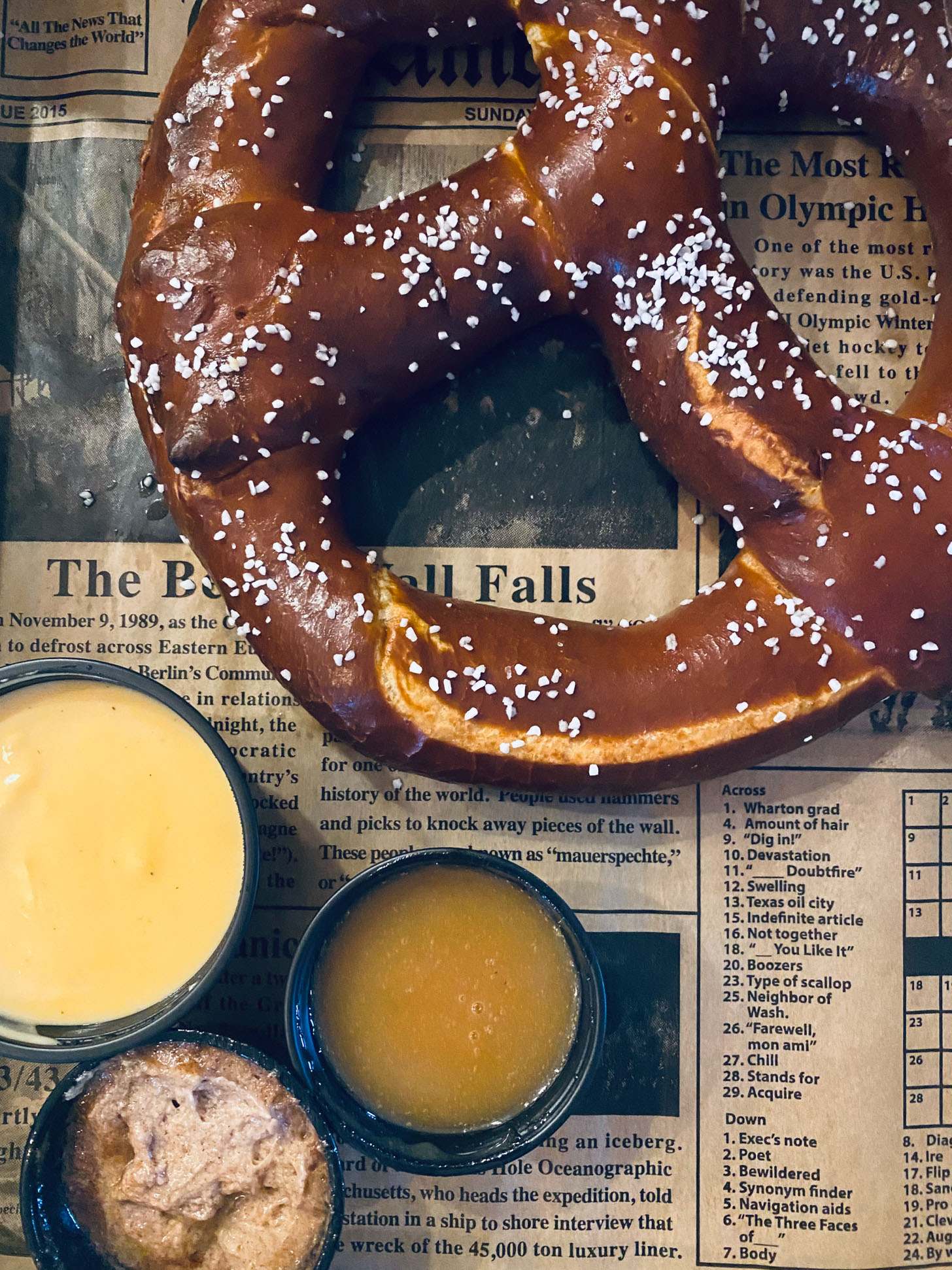 A gigantic pretzel starter seemed reasonable with our takeout one night.