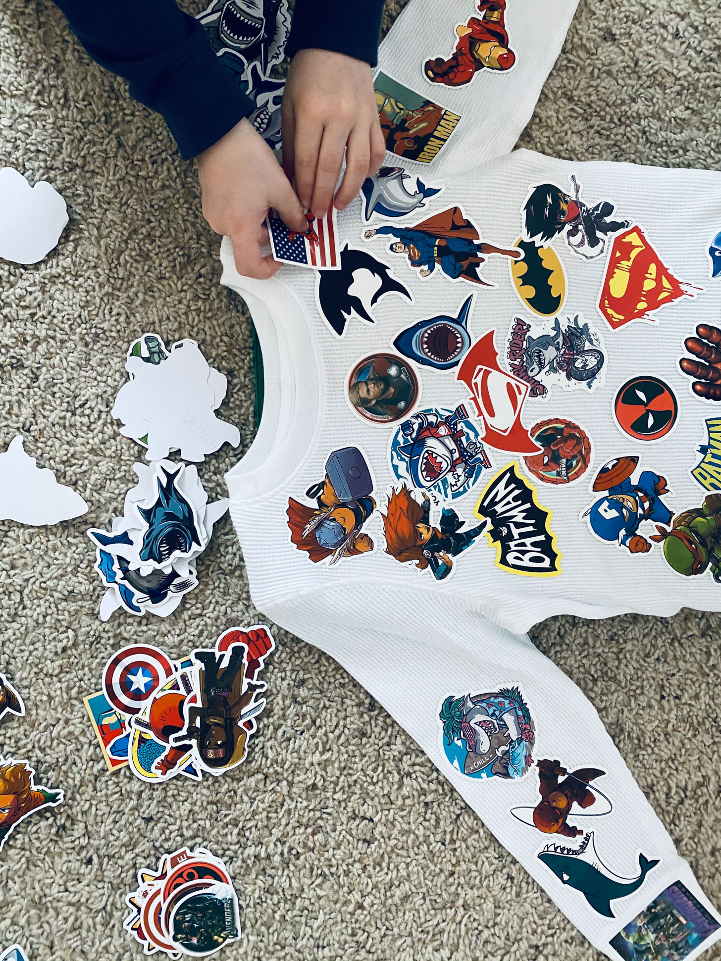 Max had his 100th day of school this week and had to make a shirt with 100 things on it.