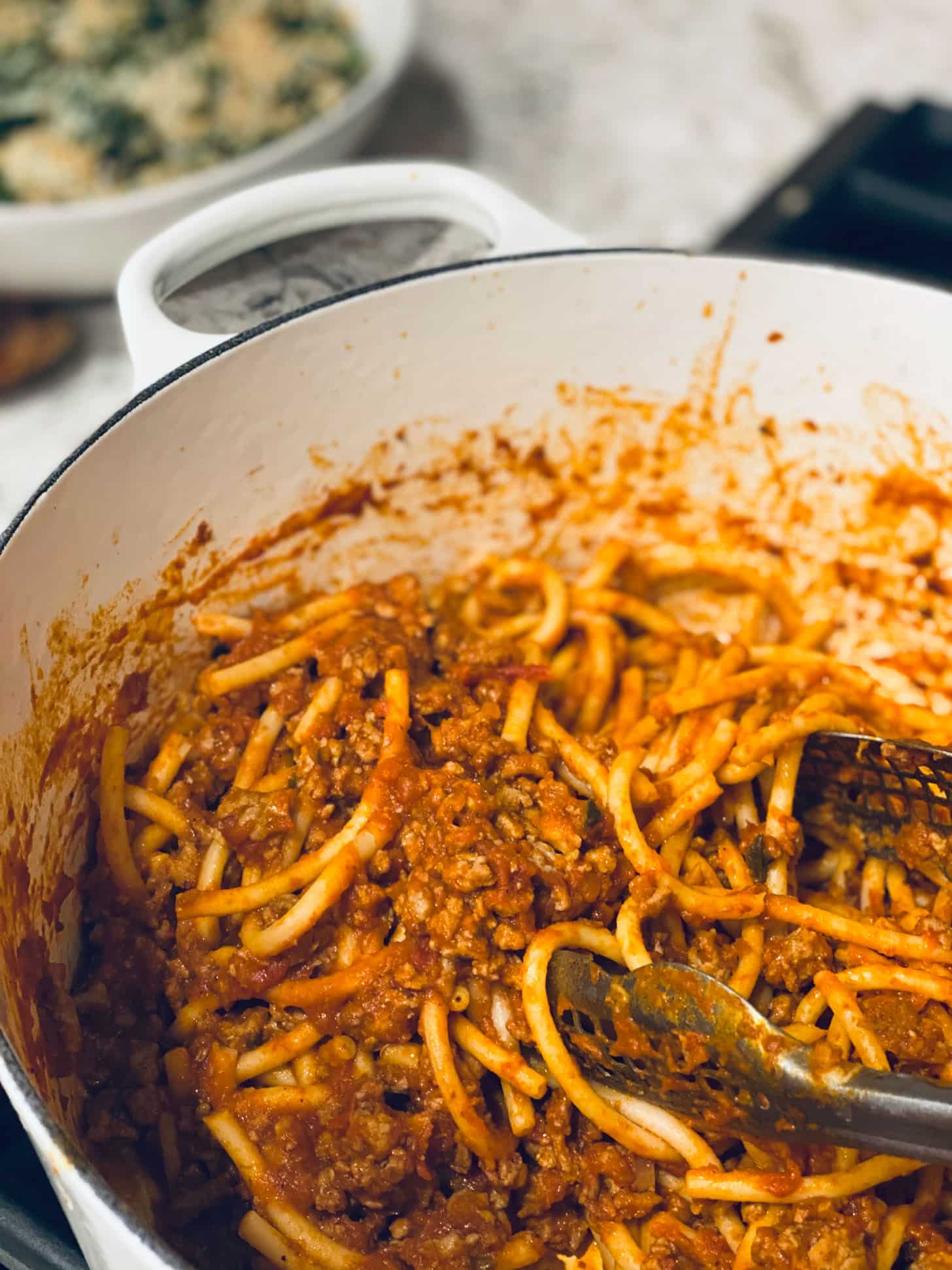 One dinner I remembered to photograph! Turkey marinara, pasta, kale salad.