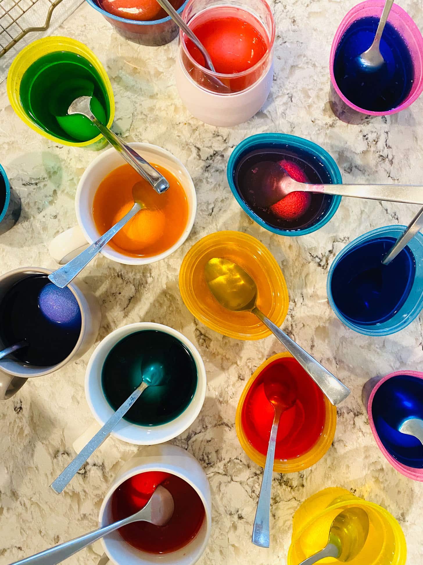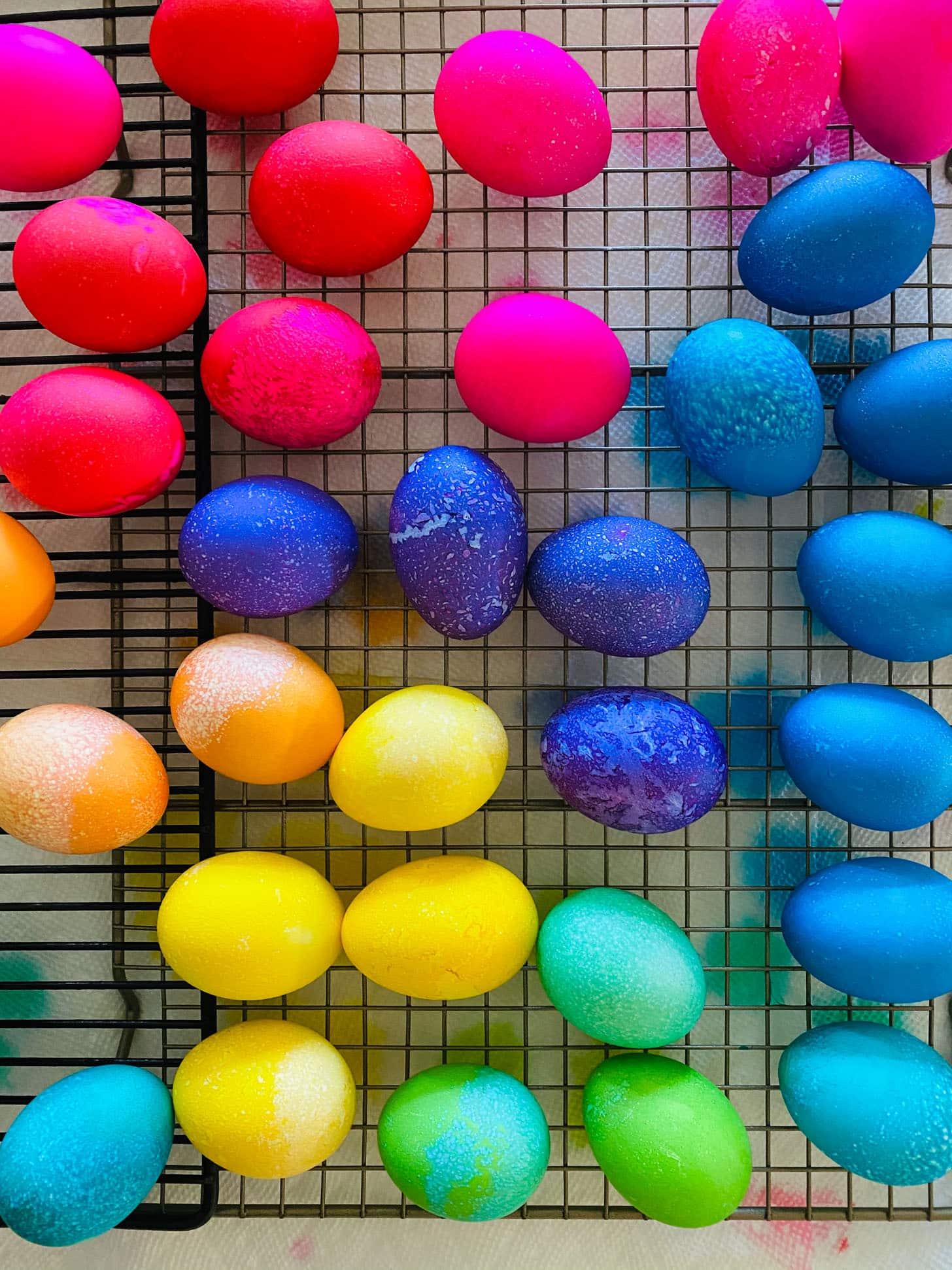 Pro tip: leave your eggs in the dye for at least an hour and they will be this bold.