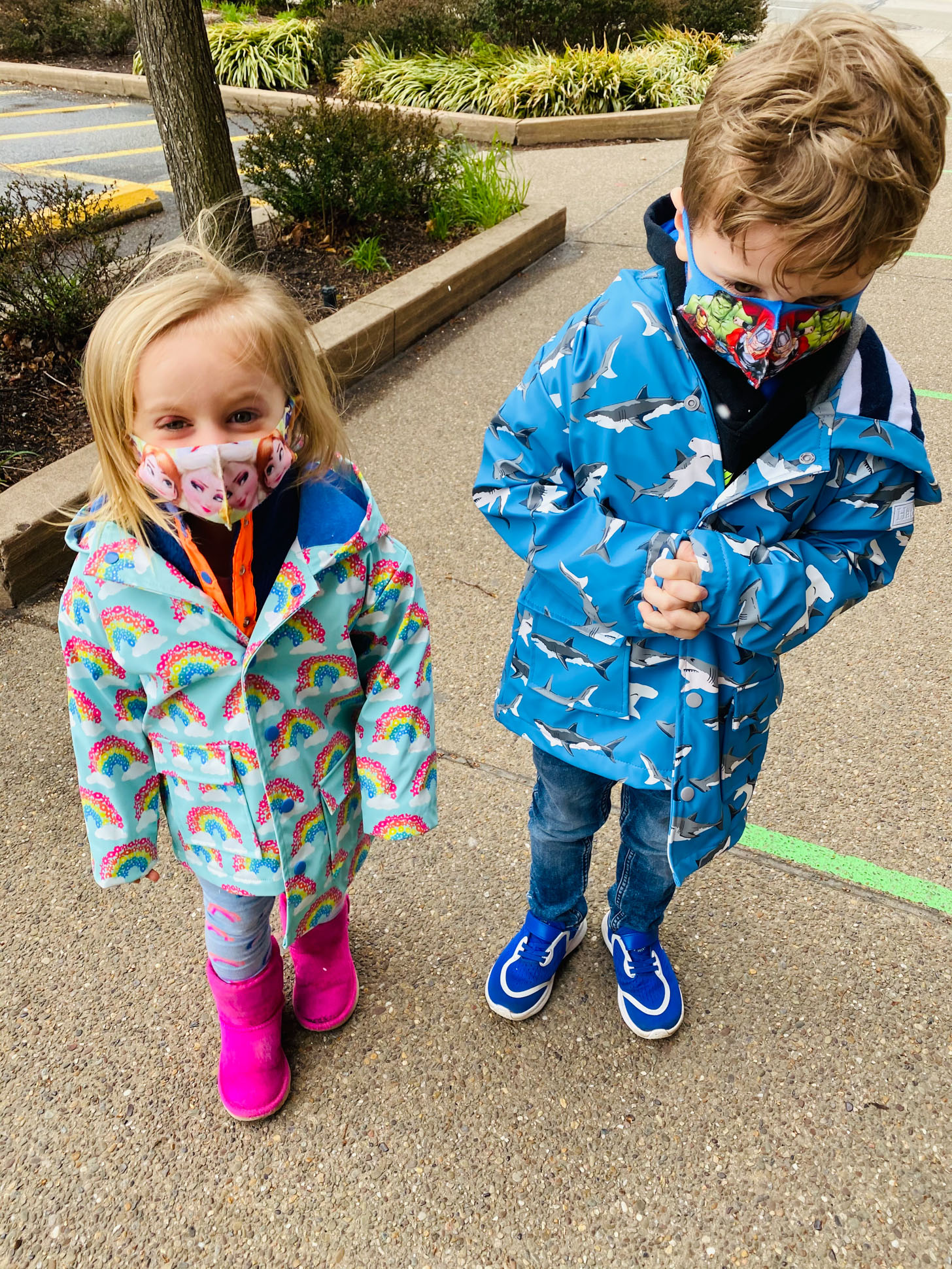 OMG…I love that the kids must have snapped their raincoats as both were off by one snap…an adorable do it myself look!