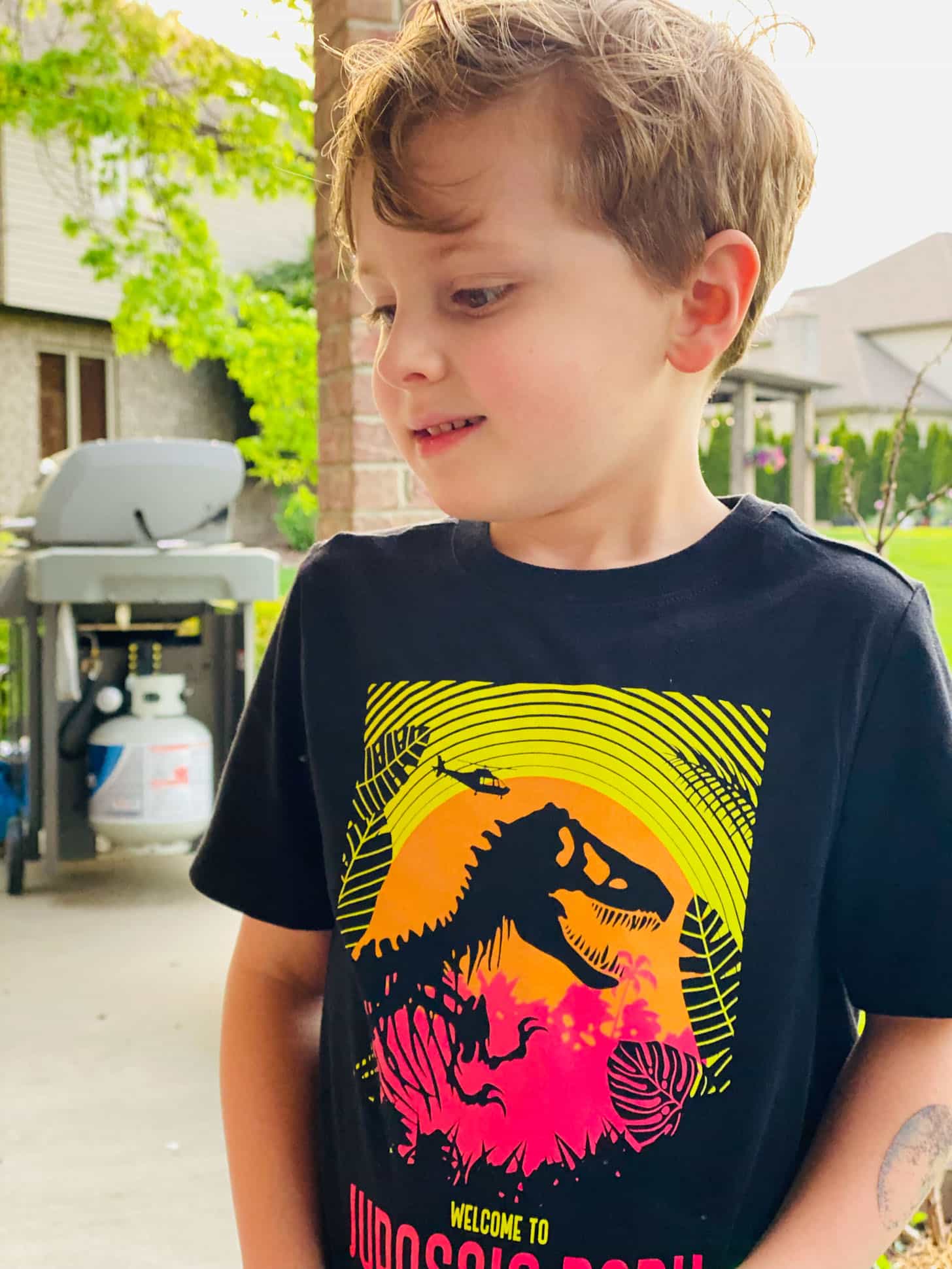 We had to run to the mall on Thursday and you would have thought the kids were in disney world. They were so excited to walk around! And then Max found this shirt in Old Navy and was thrilled. Both kids love Jurassic Park (and dinos in general) so we had to get matching.