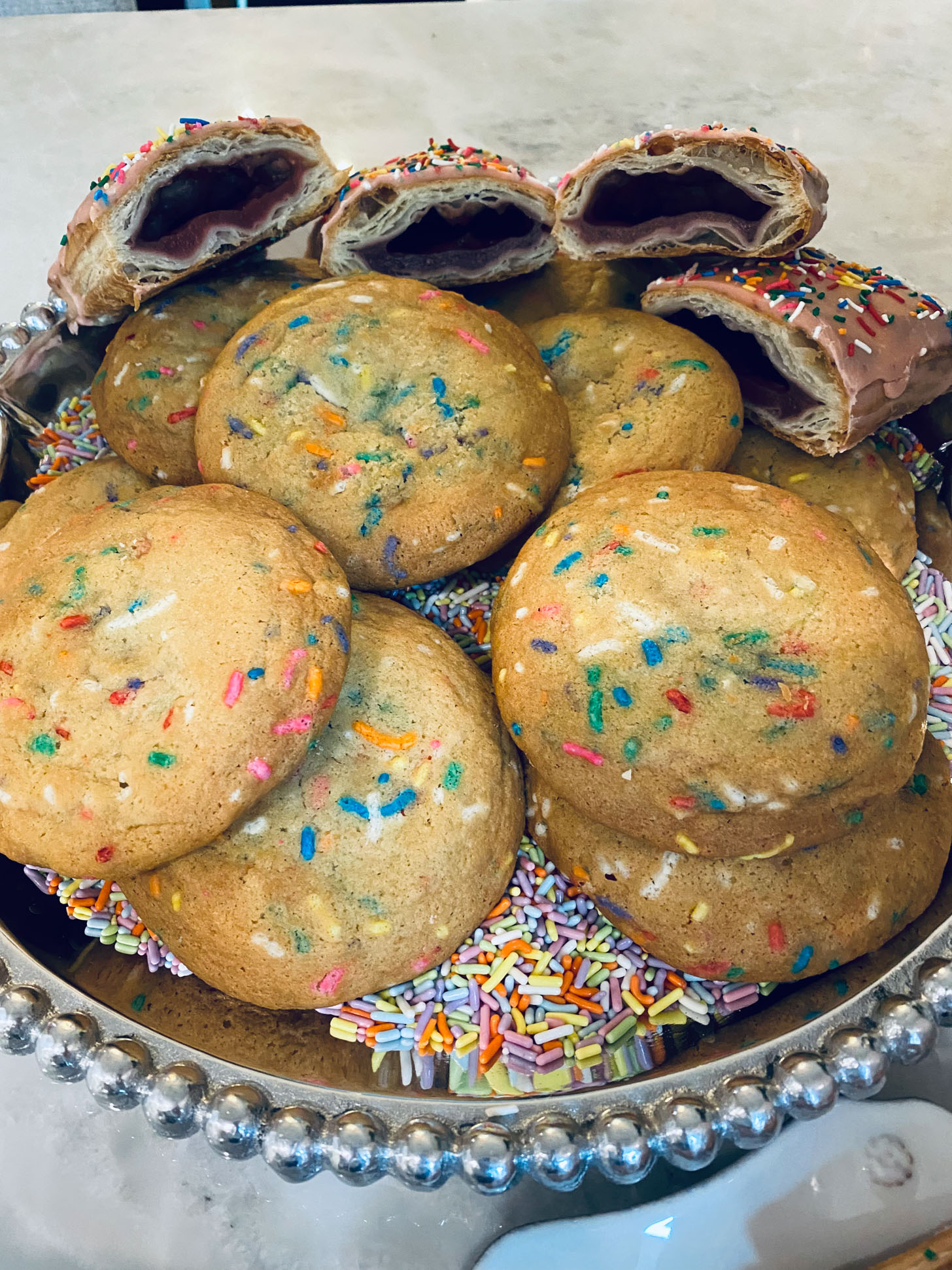 She had so much incredible food. Some of our favorites from Morcilla (the gem salad, the manchego!) and smash burgers from Acorn with the best fries. She also made my caramelized onion dip and had incredible treats from 350 bakery. Their strawberry pop tarts are insane.