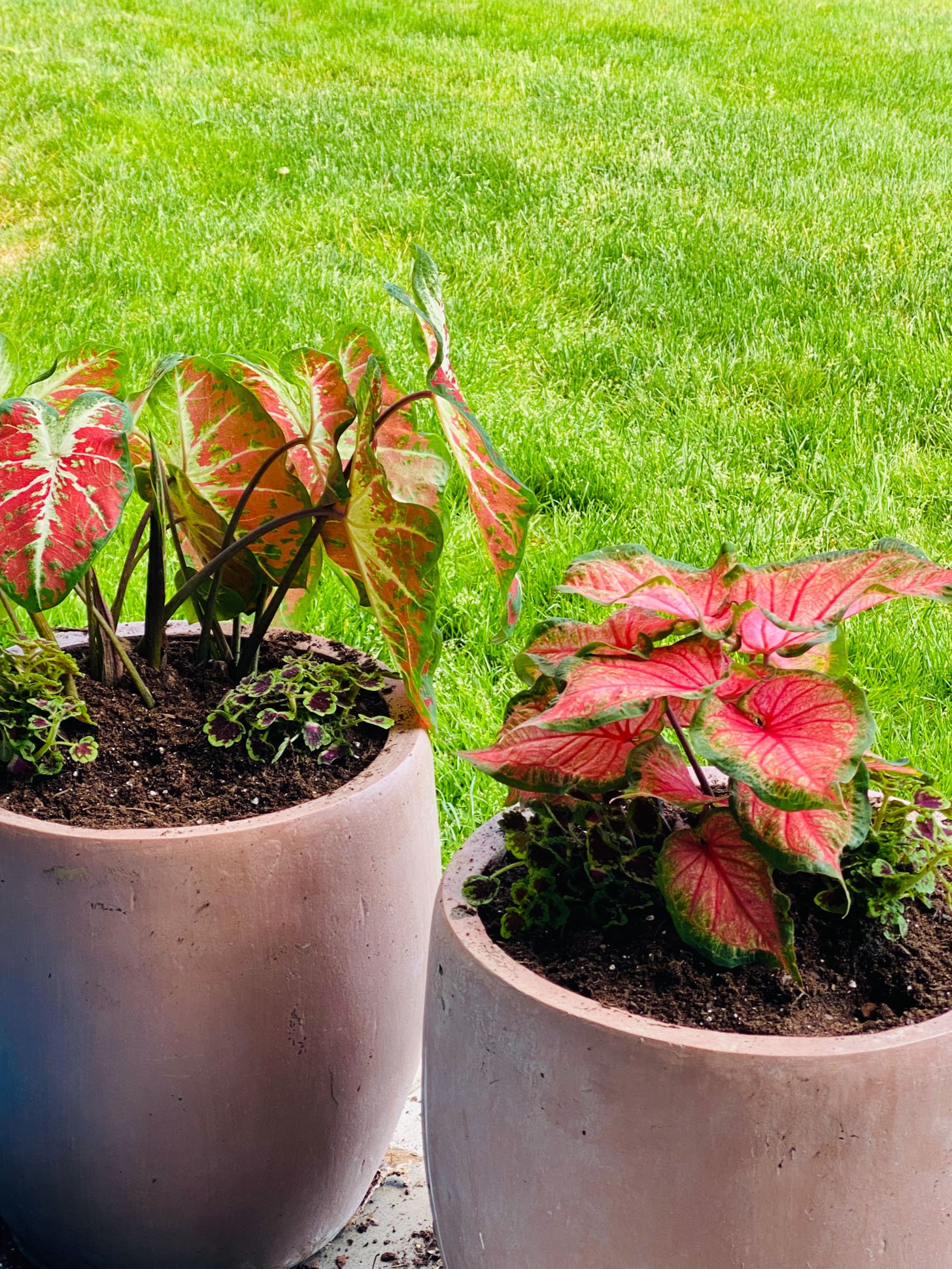 I love caladium and they are tubers so you can either dig up the tuber or just bring the whole pot in to winter in the basement/garage!