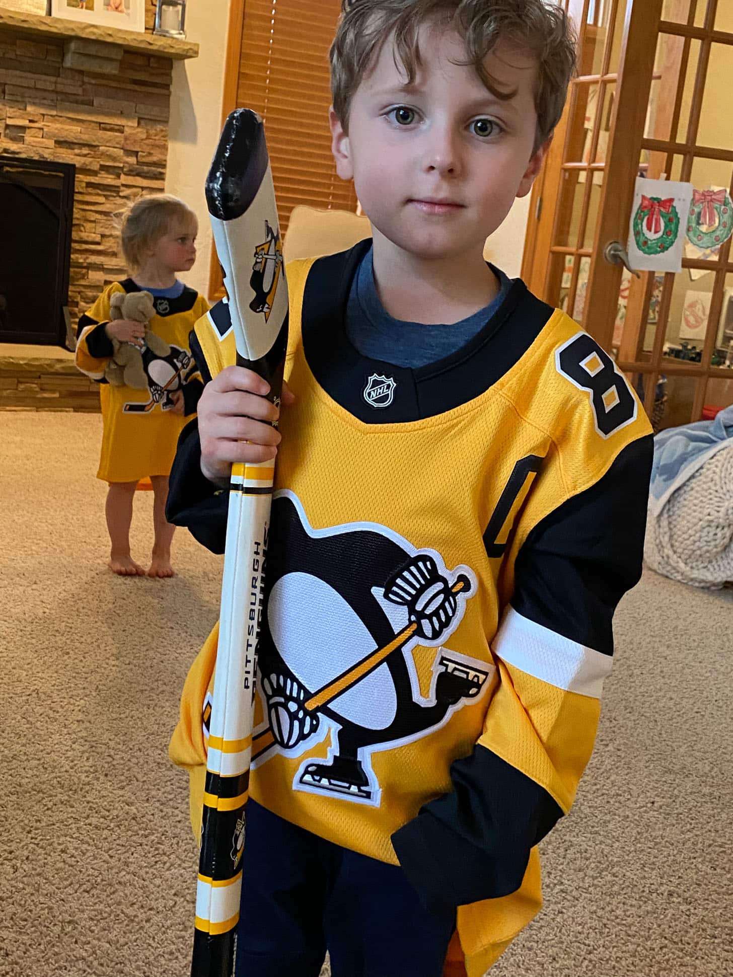 Max wanted to do his “serious” pose for the (sad) pens playoff game. Made his sister dress up too! Also, please note our christmas pictures still hung up in the background. Max colors pages of things or draws stuff himself, gets tape and hangs the stuff ALL OVER THE HOUSE. I leave them. They’re everywhere.