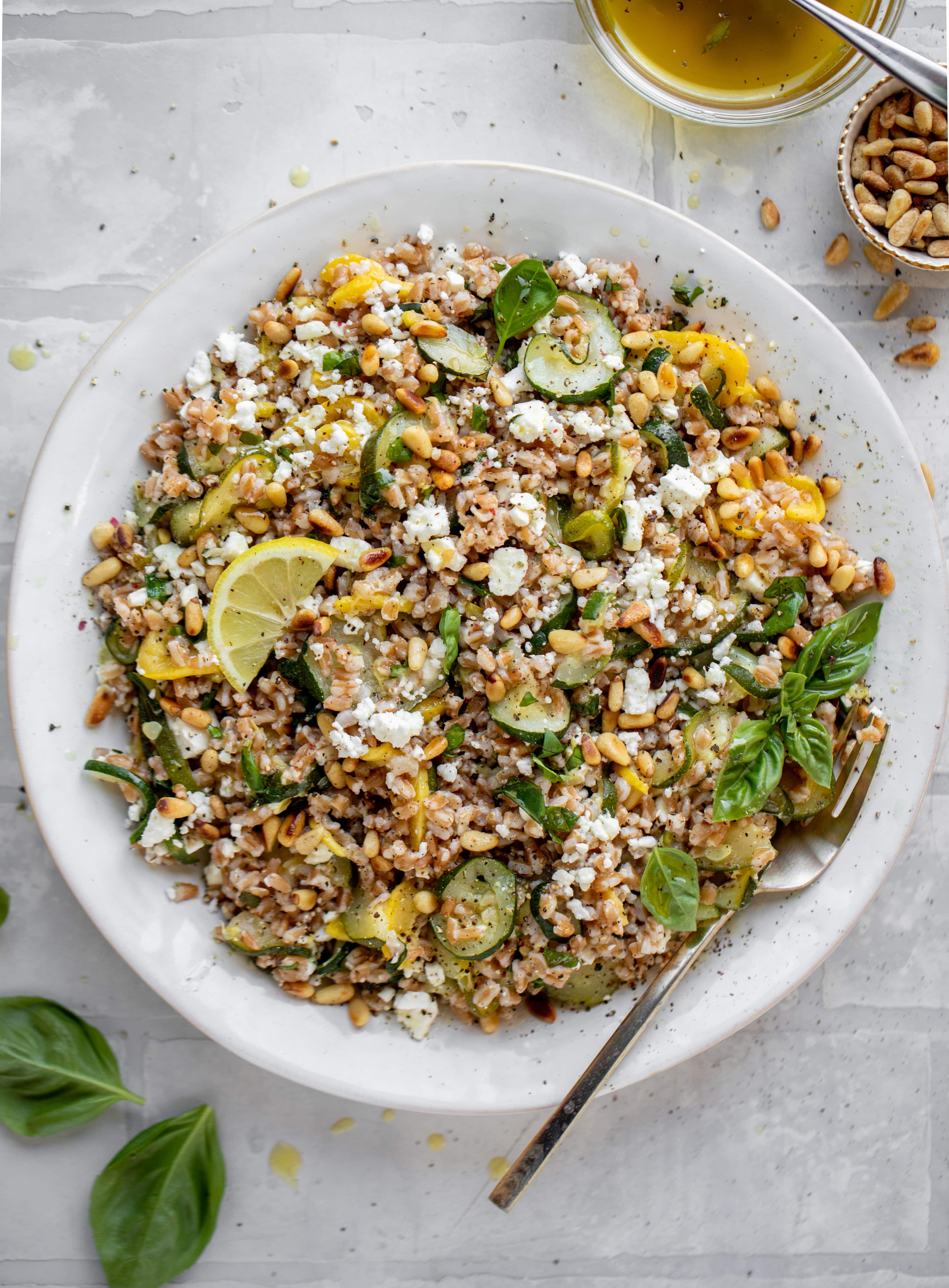 Marinated Zucchini Feta Salad with Toasted Pistachio Breadcrumbs
