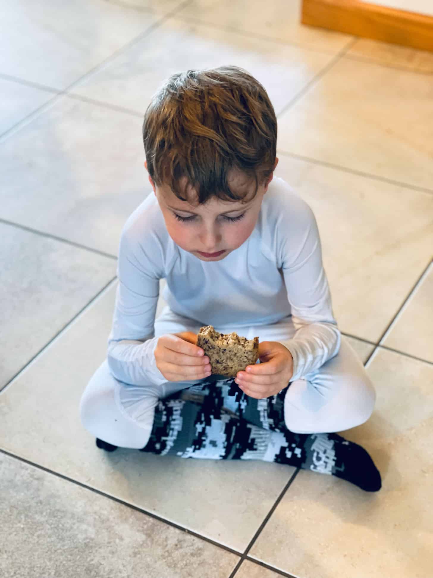 Promptly sat on the kitchen floor after hockey to eat this banana bread. Ha.