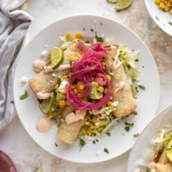 - All the toppings! I love to add lettuce, tomatoes, pickled onions and the crema, but you can choose whatever you love! Maybe pickled jalapenos? Cotija cheese?
