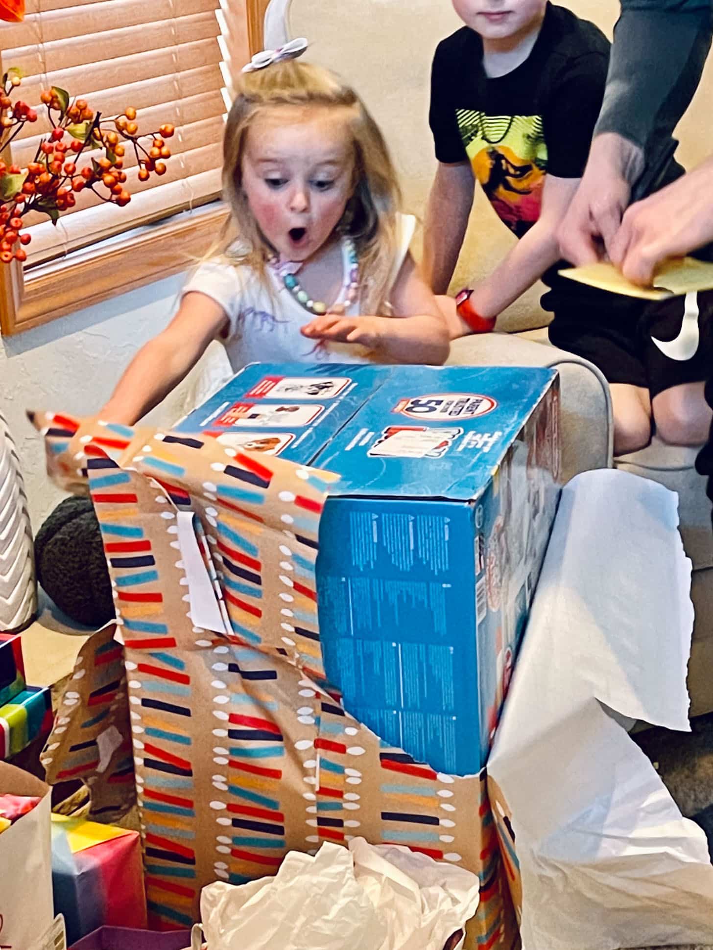 And happy belated birthday to Emilia! What is that giant present that she’s opening? Her face is 100% perfection there!