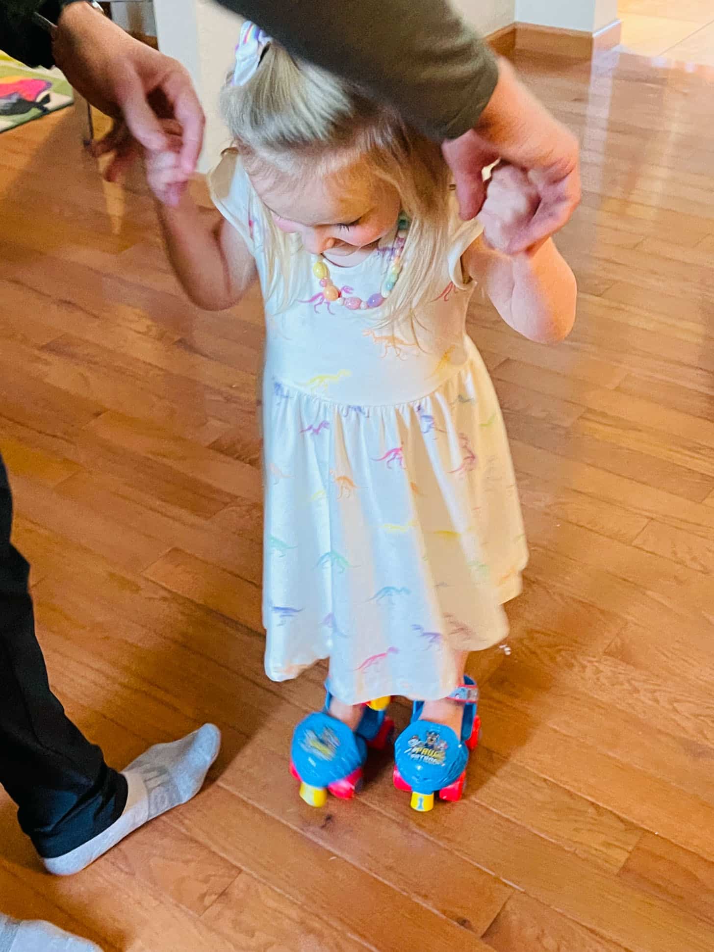Umm my parents got her paw patrol roller skates… LOL. She loves them. You wear them with shoes but she’s been putting them on all day without.