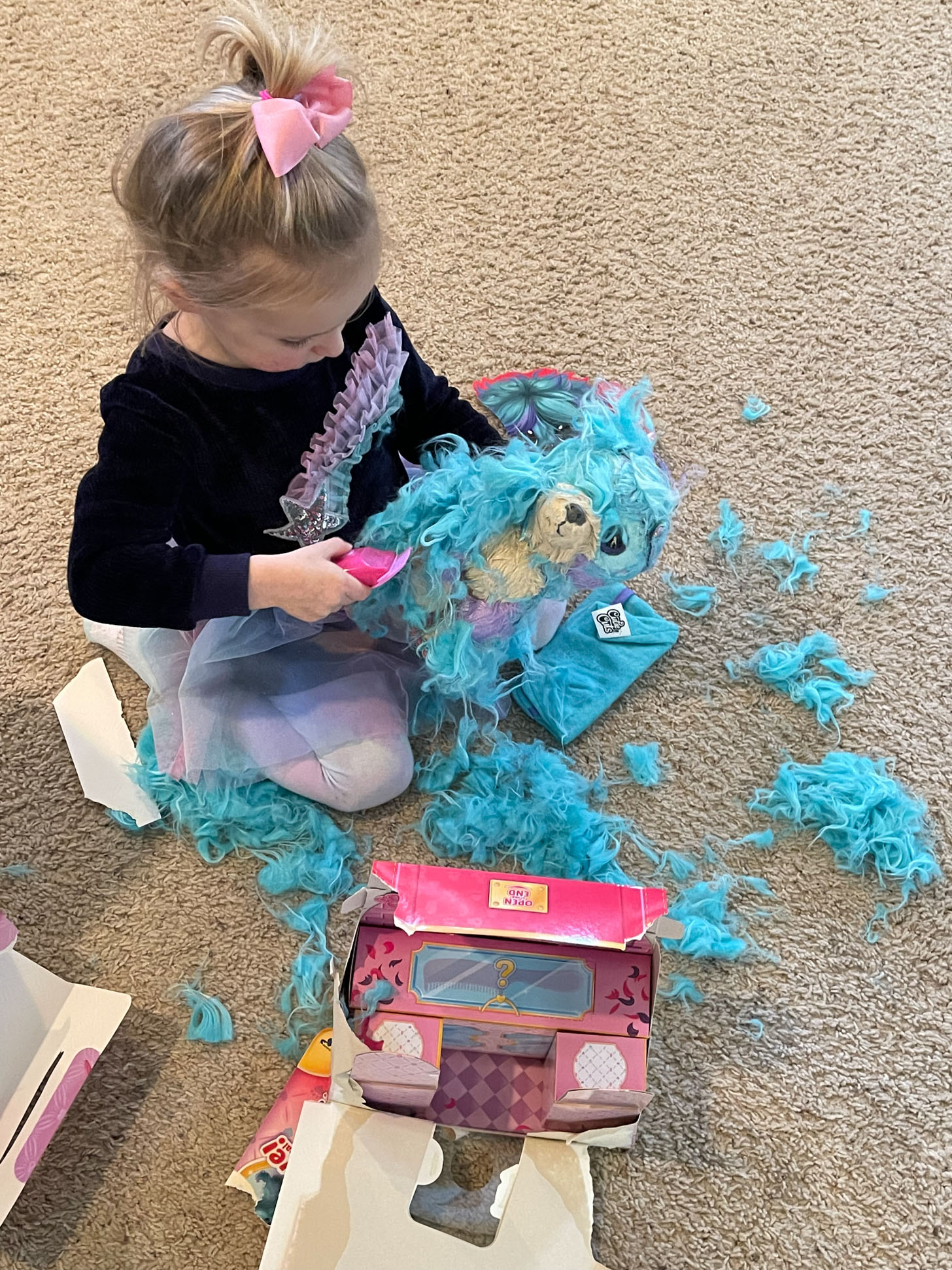 Also, let’s talk about this instagram vs reality. HA. Emilia sees the commercial for this salon dog thing where you “shave” the fur off every single day. She always asks for it. Max asked me if he and Jordan could get it for her birthday, so how could I resist? I mean yes it’s absolute junk but still. So we got it. Um… THIS is what they advertise that it is supposed to look like once it’s gone to the doggy spa.