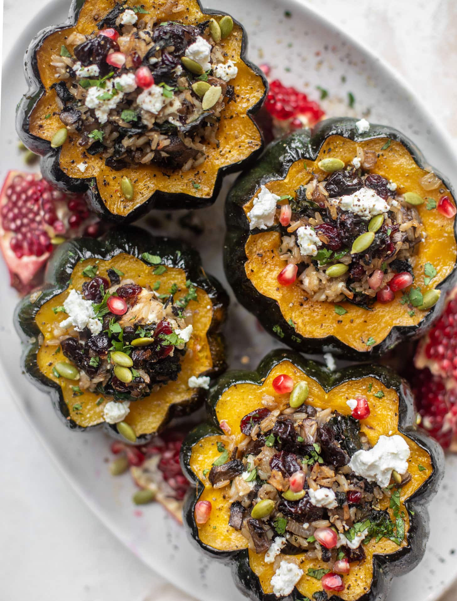 I can’t even express what a beautiful addition this stuffed squash brings to the table. It’s so festive and gorgeous.