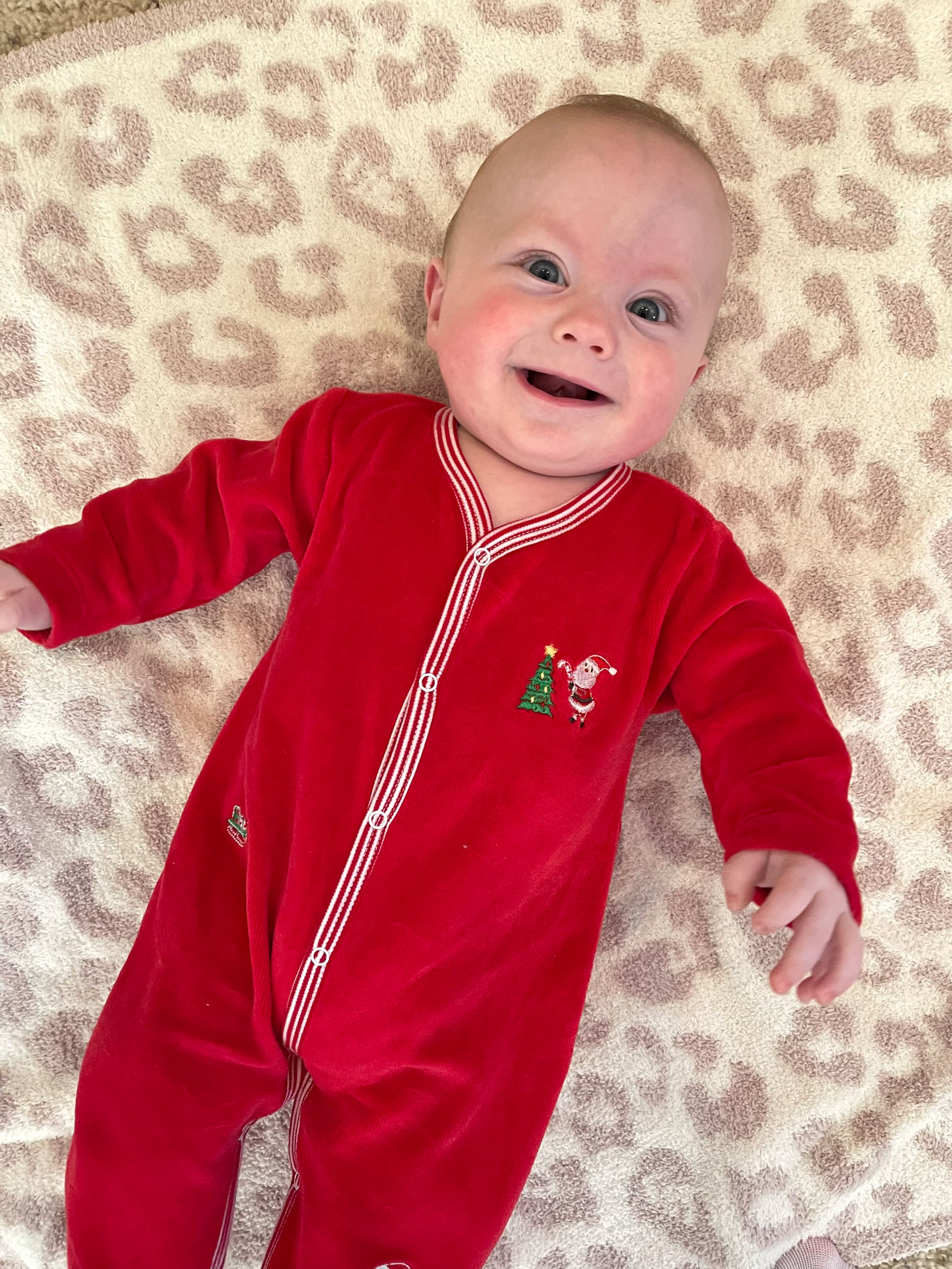 Love all the PJ’s as always, SO festive. I hope Jordan is always that smiley, he is the most adorable baby!! Love the mugs you used for your hot chocolate. Umm so can we get a weekly update on what the Elf on the Shelf is up too? especially with Max’s Birthday coming up. I know he likes to go all out!