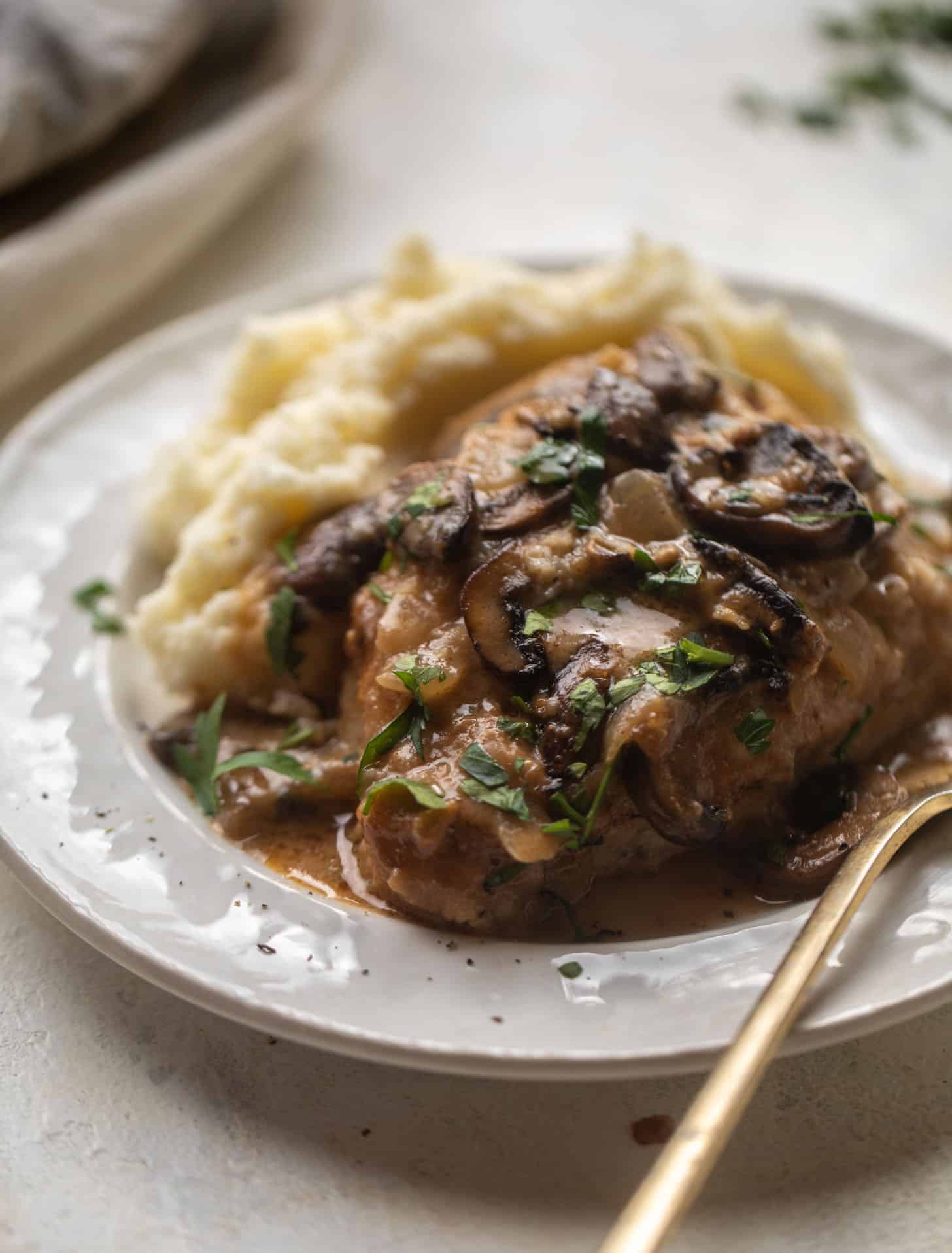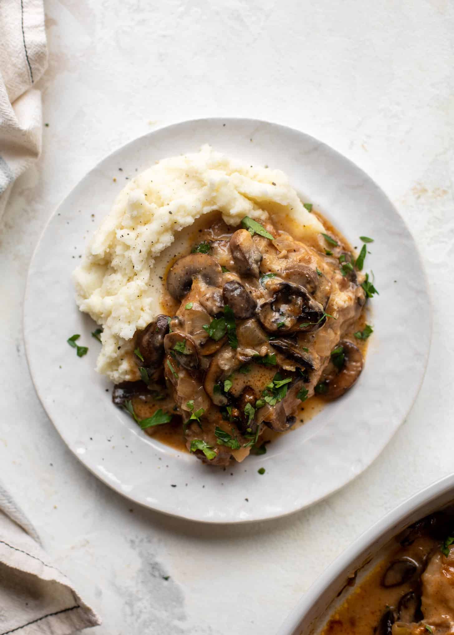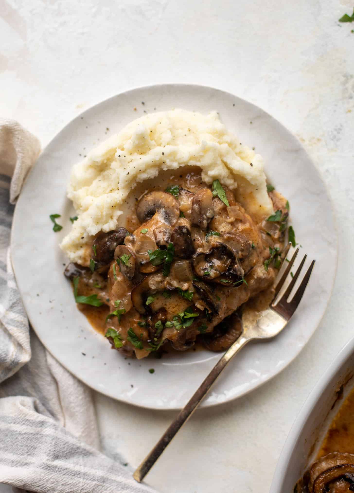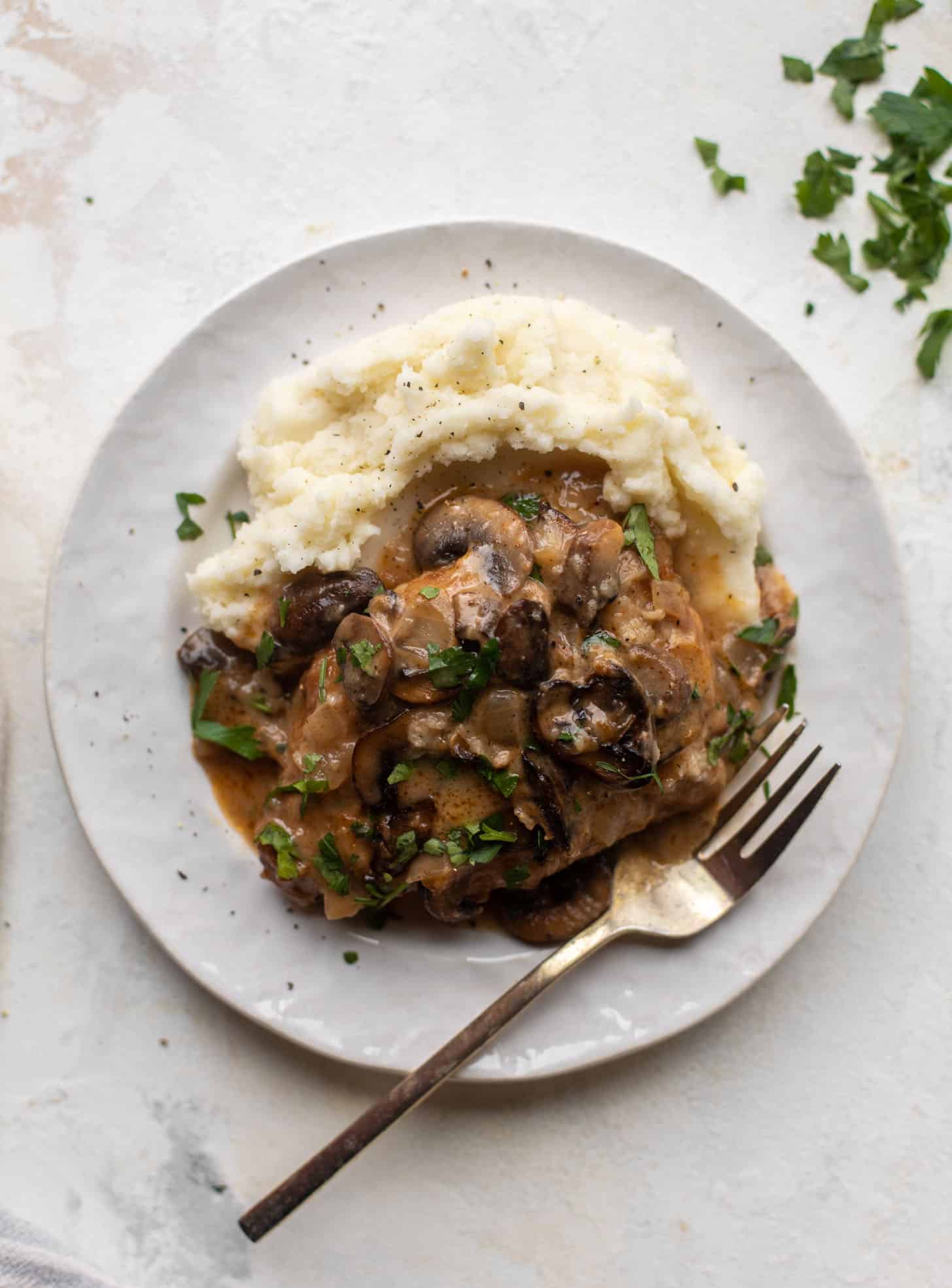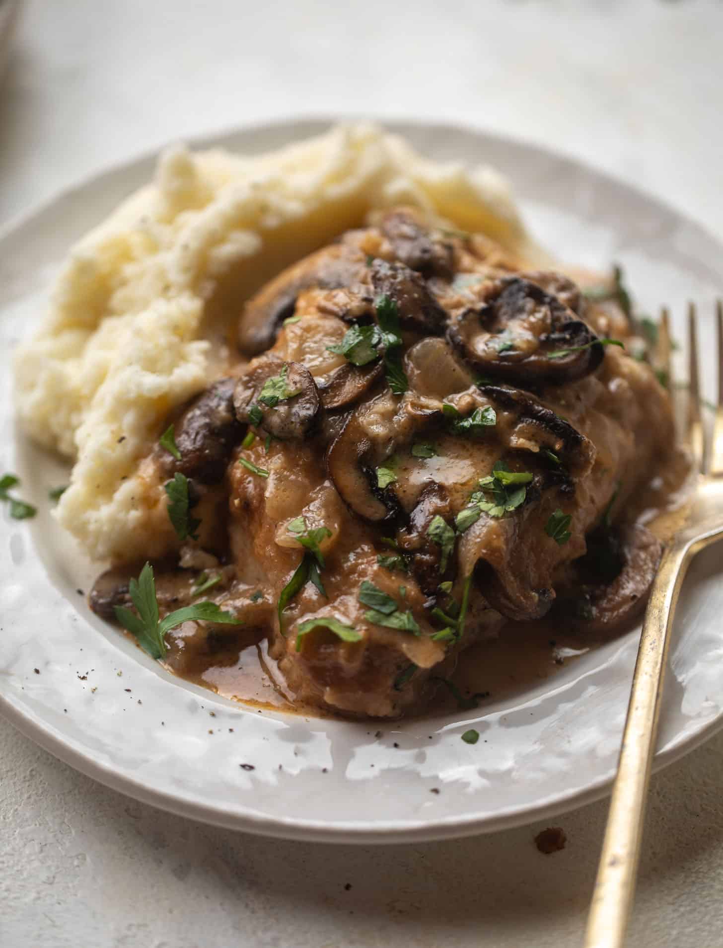 This post is sponsored by the National Pork Board! This smoky pork marsala is a spin on our favorite chicken dish! Served over creamy mashed potatoes, it’s a cozy and comforting weeknight meal that everybody loves.