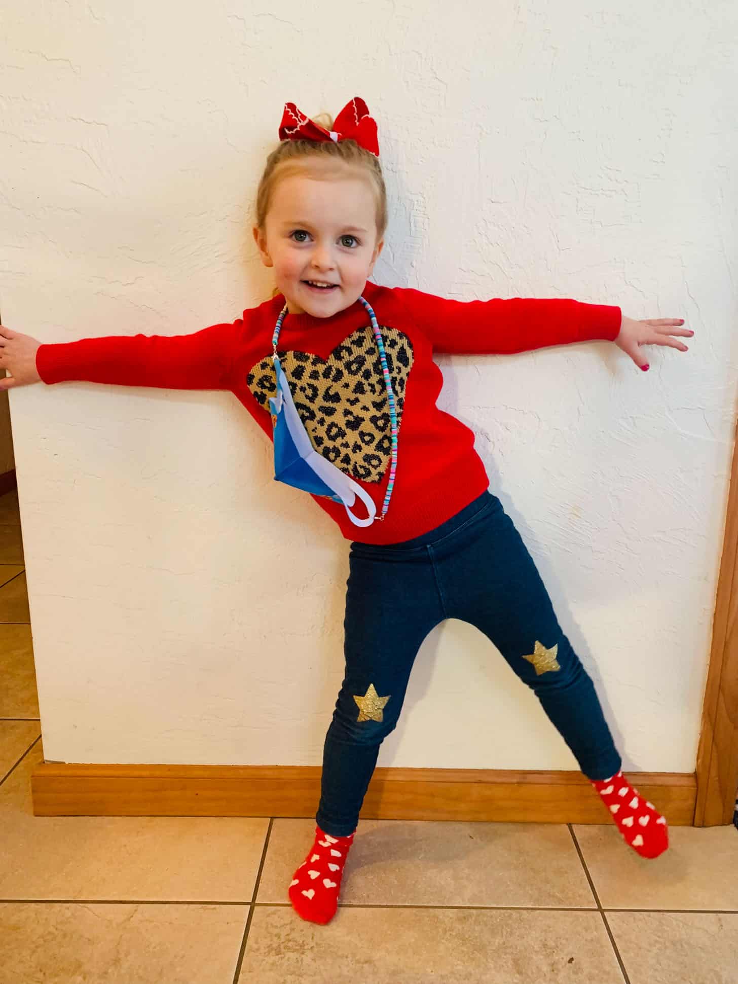We’re breaking out all of our valentine’s day clothes. Just a sweater and socks she has had since she was two, ha!