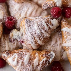 For a topping, I love to use a vanilla glaze here that is super simple. That way it doesn’t take away from the turnover itself. I also sprinkle on a little powdered sugar!