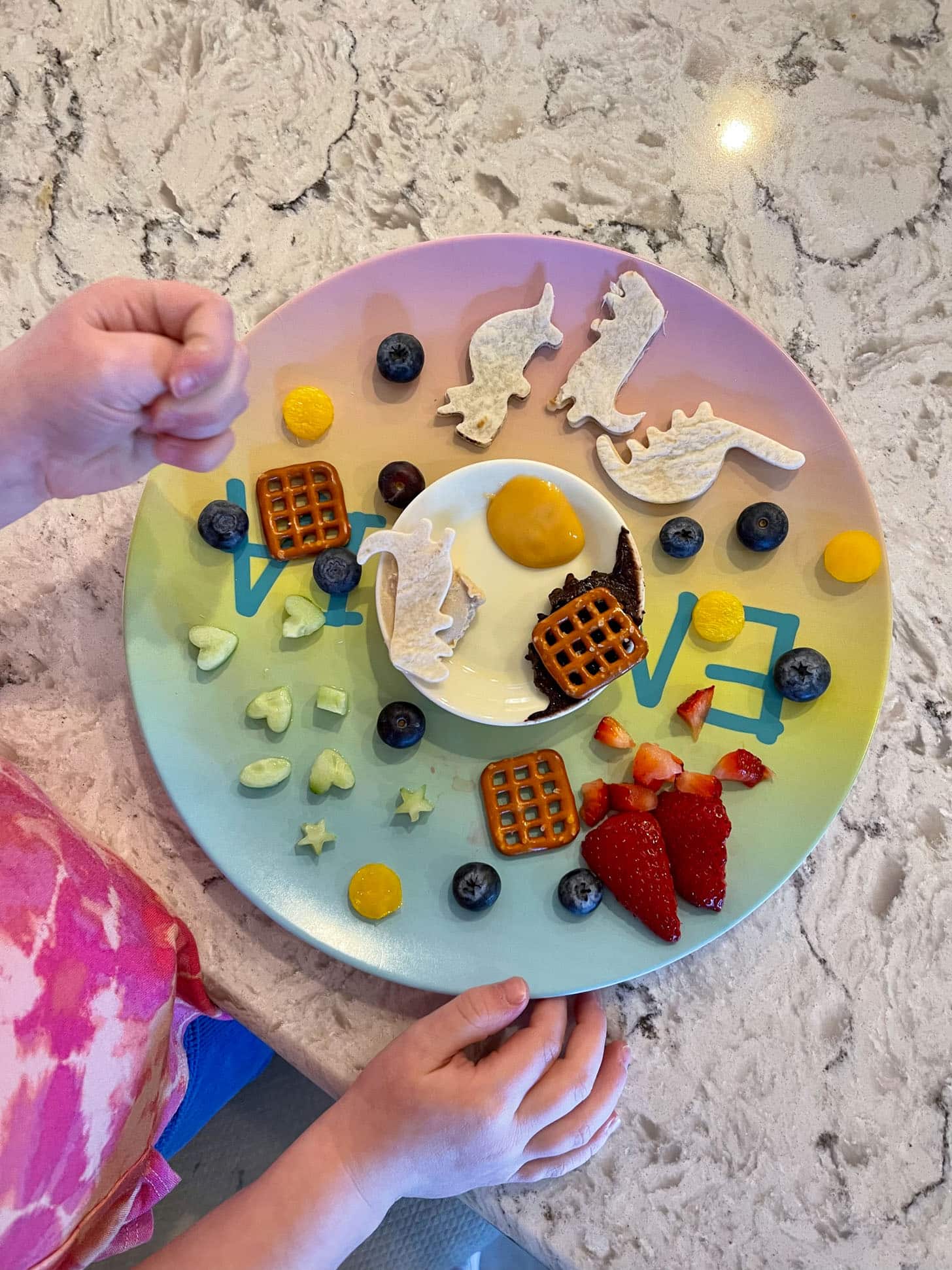 How cute is this little dinosaur adventure snack plate that our nanny made Emilia?! She lives for dinosaurs.