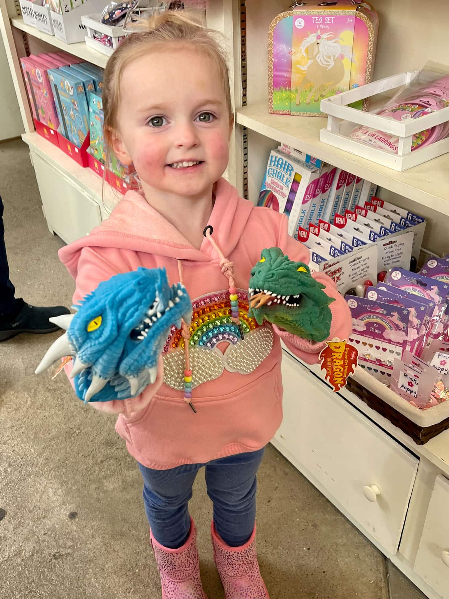 Shopping with grandma and all Emilia wanted were these dragon/dino puppets.