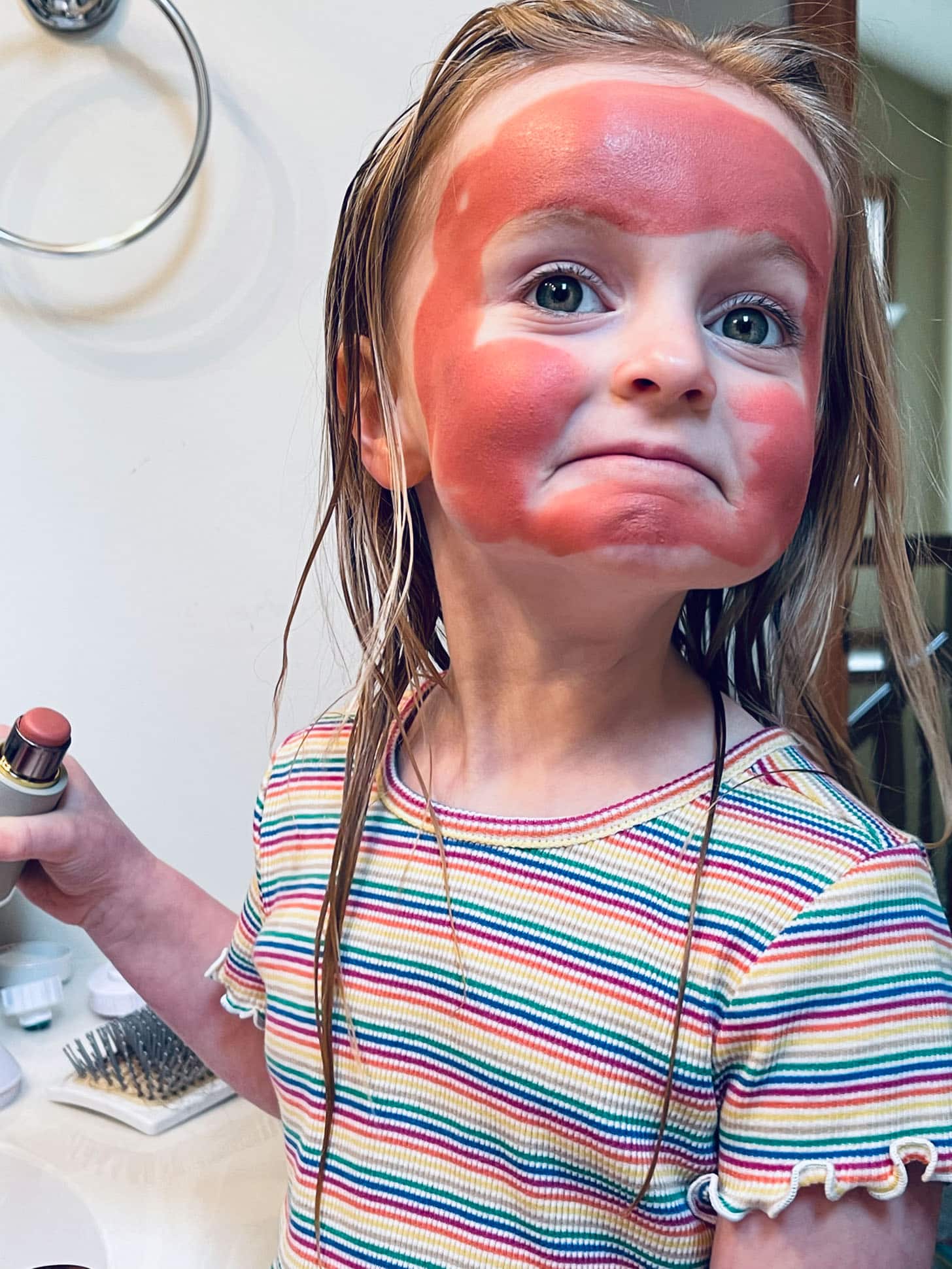 My little 3 year old looooves to play with my makeup. I can’t get mine done without her coming in asking if she can do hers too! It does definitely take a ton of patience! I’ve learned to be okay with her going out with bronzer and eyeshadow all over her face because she refuses to let me wash it off of her :) The coconut oil is a good tip! I’ve just used makeup remover wipes but I use so much of them.