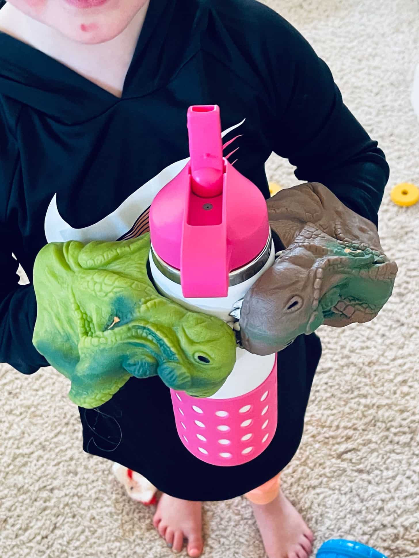 Emilia was seriously drinking with these puppets on her hands.