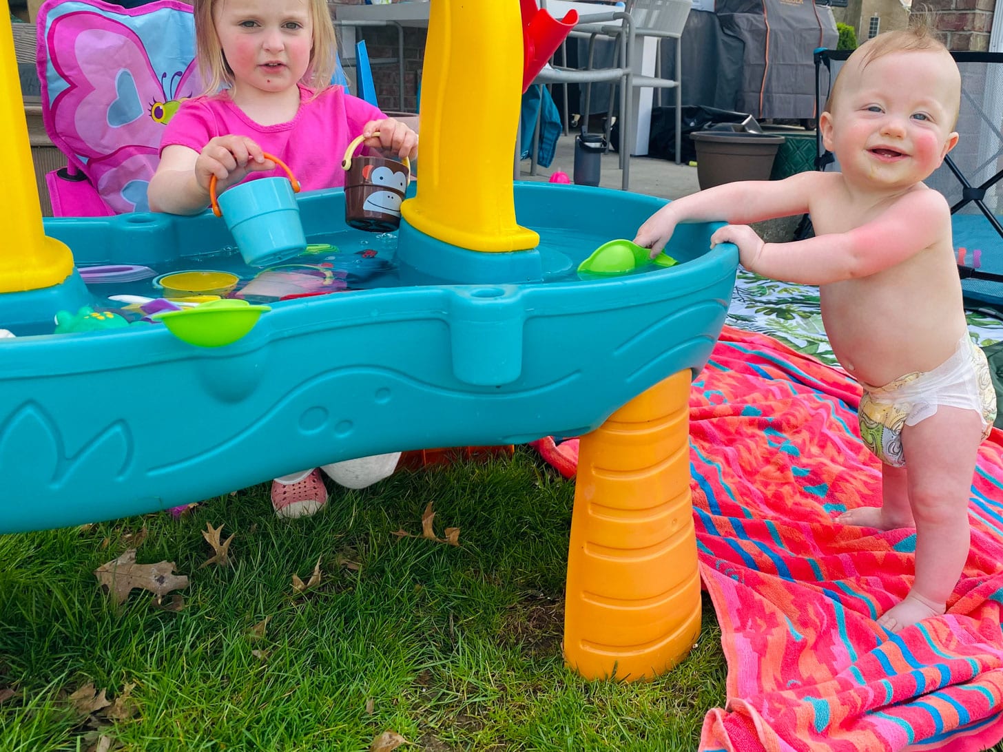 These cuties at the water table!