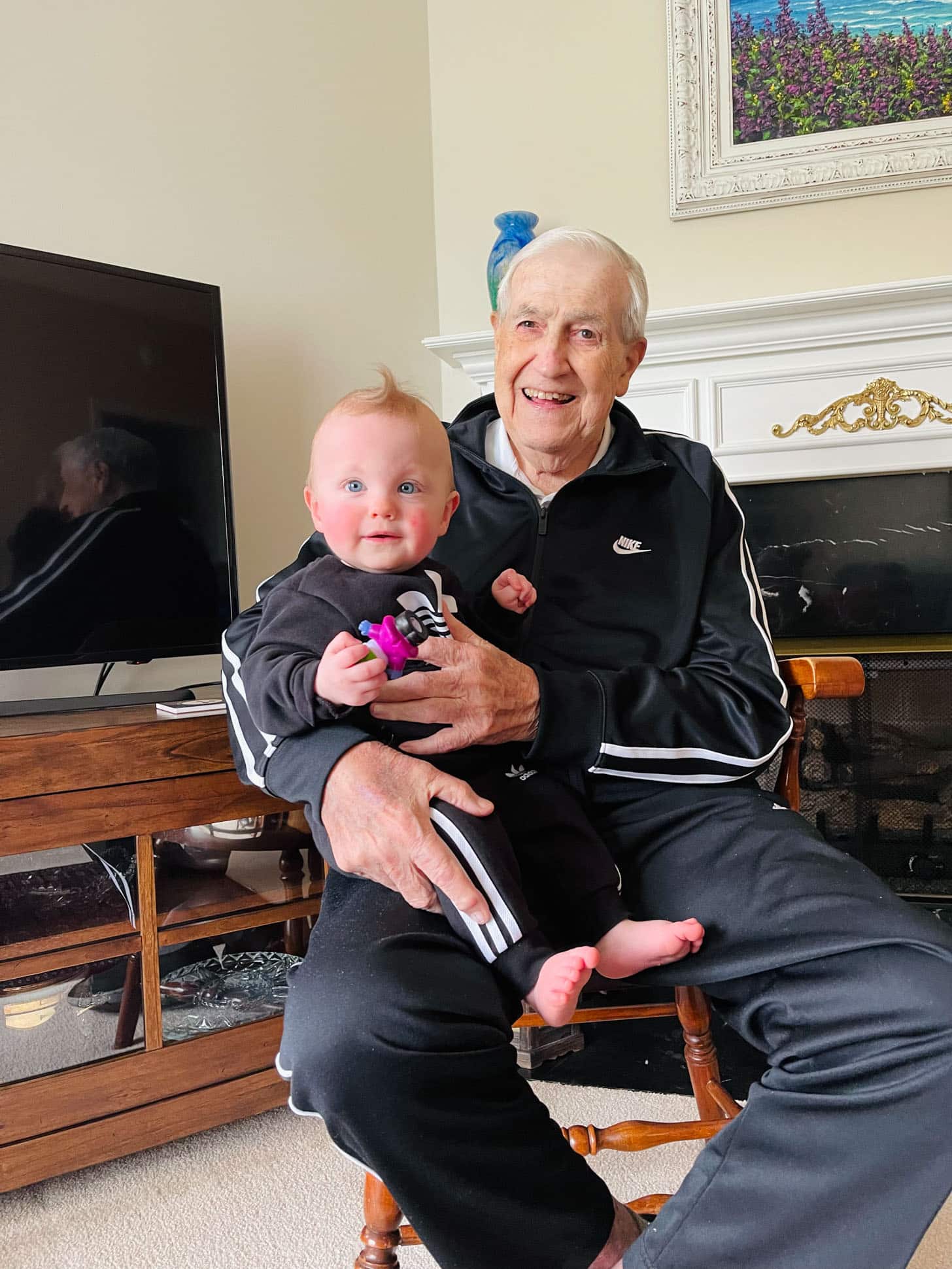 Incredible that your grandfather gets to enjoy great-grandchildren! He looks great for 94 as well! How lucky for him and your kids.