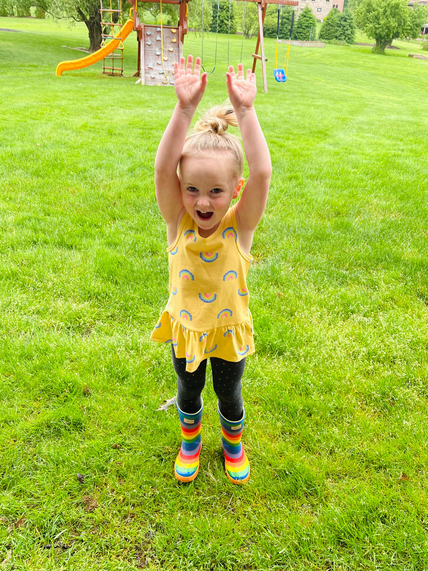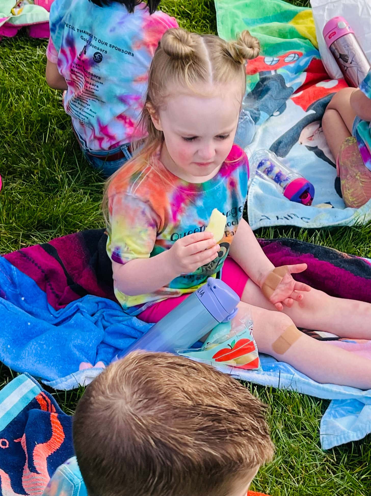 We had outdoor fun day at school where within 10 minutes Emilia took a tumble and got multiple scraped hands and knees. But she rallied.