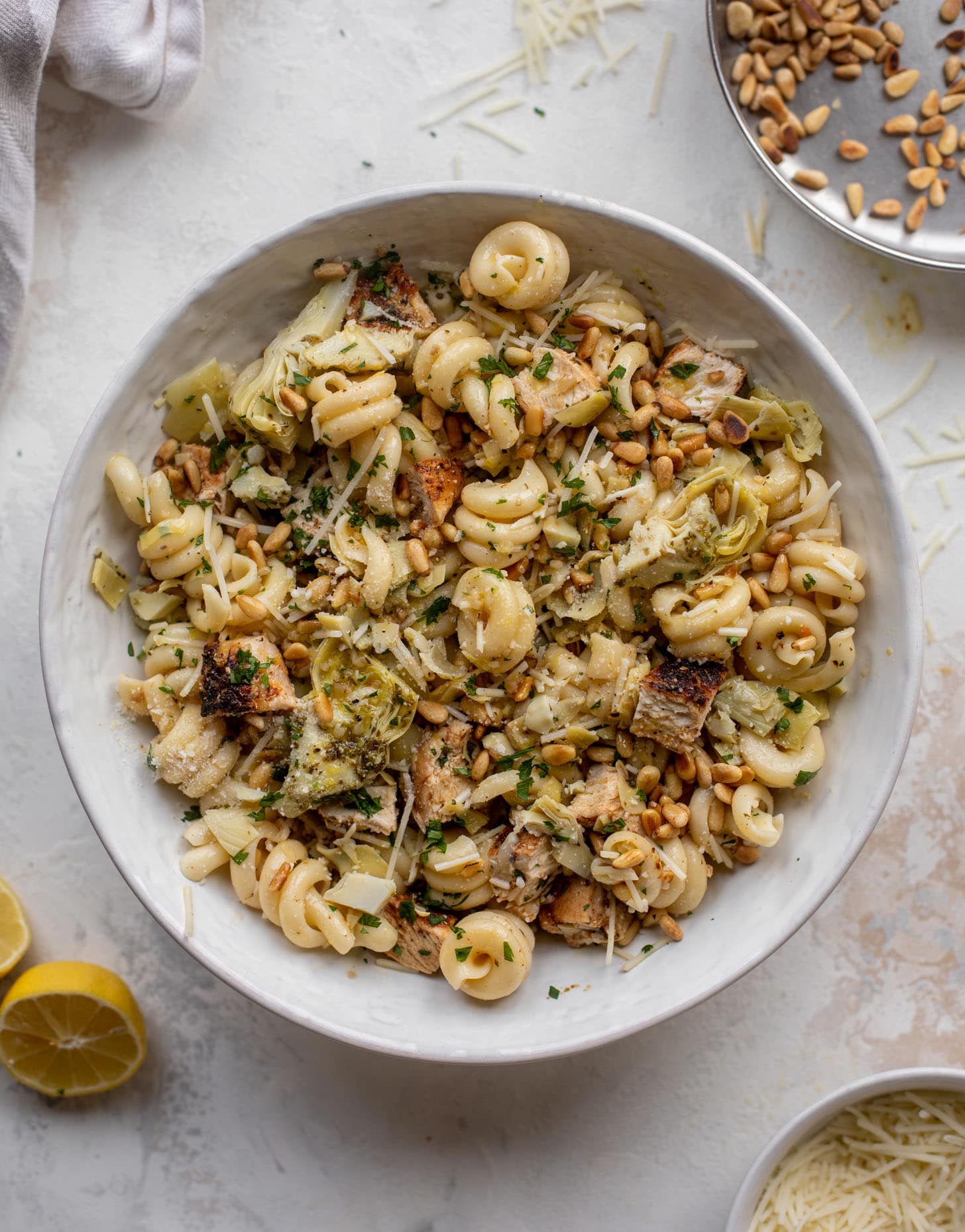 I love this lemon artichoke chicken pasta salad – it’s such a great dinner! Add a salad if you wish.
