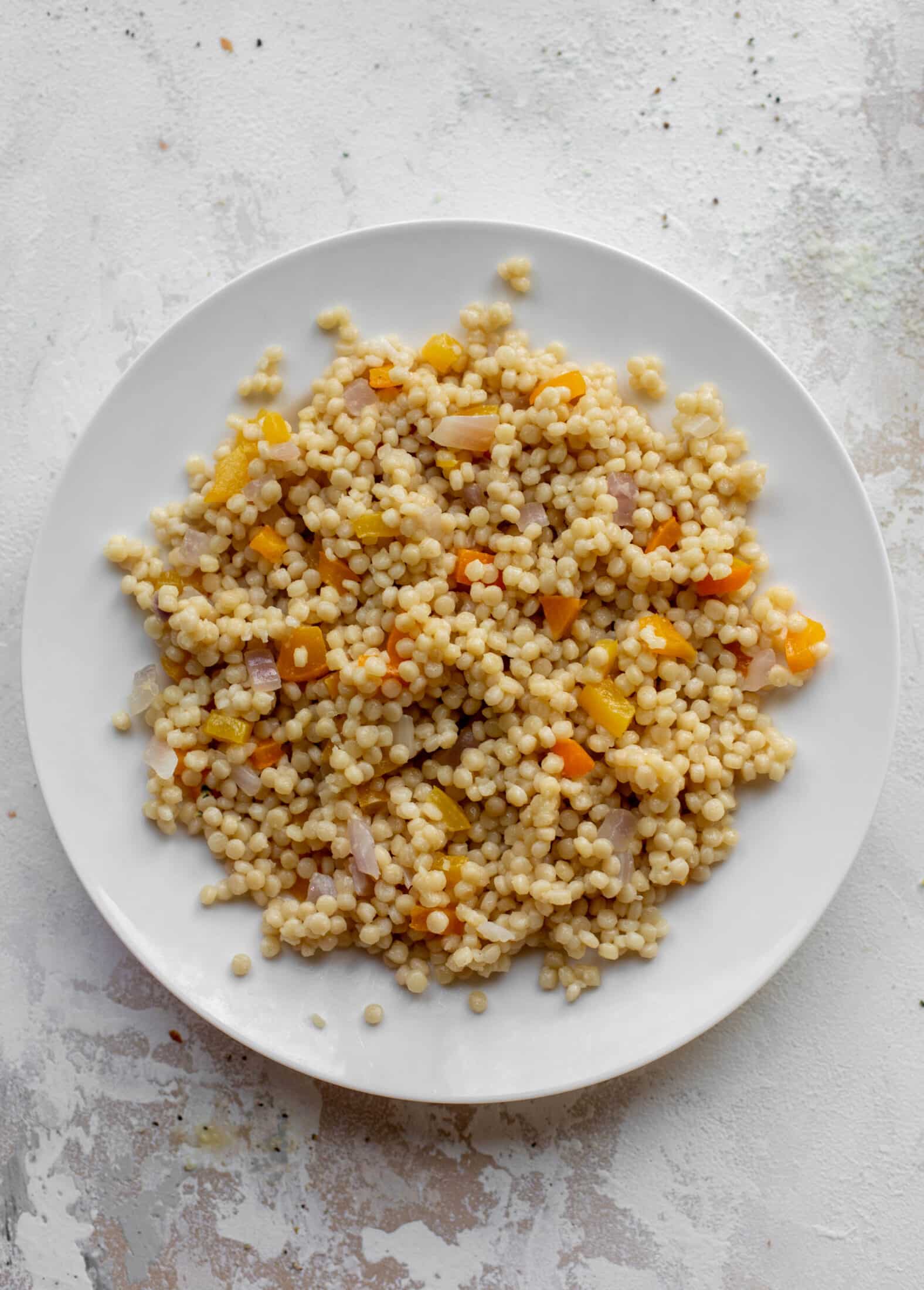 The couscous – pearl couscous to be exact. It’s my favorite. I use this one and get it at my local grocery store.