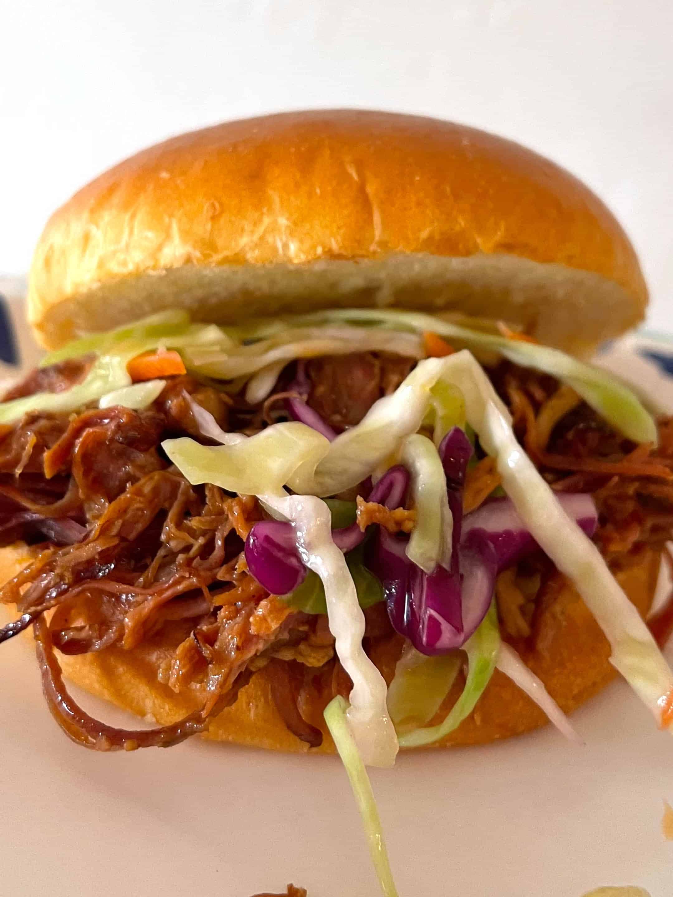 I was craving a vinegar slaw so I made pulled pork to have a vehicle for it. This is what happens when you recipes constantly all week.