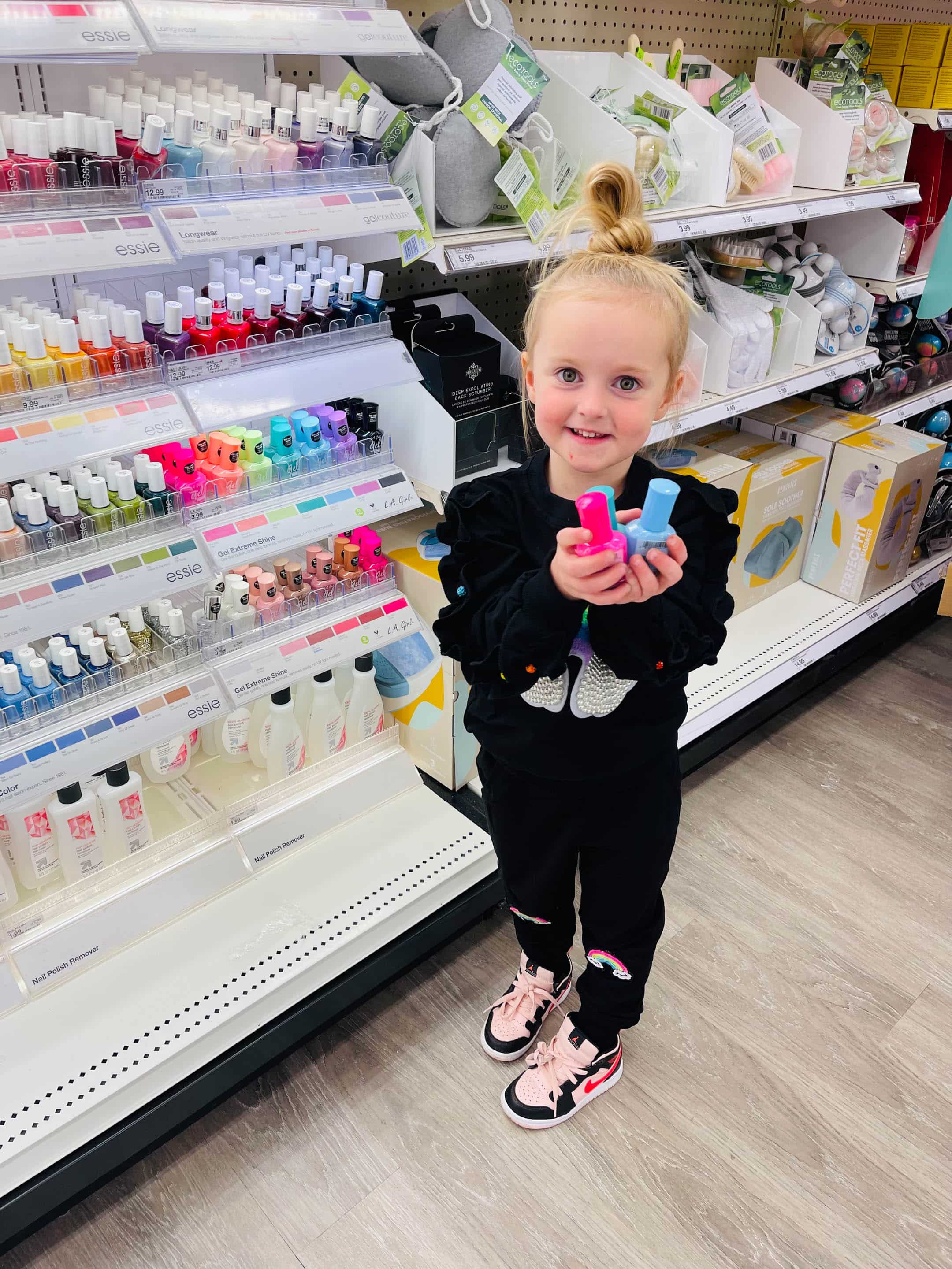 We went to Target and she flipped out when she saw the nail polish. I love that she loves bright colors!