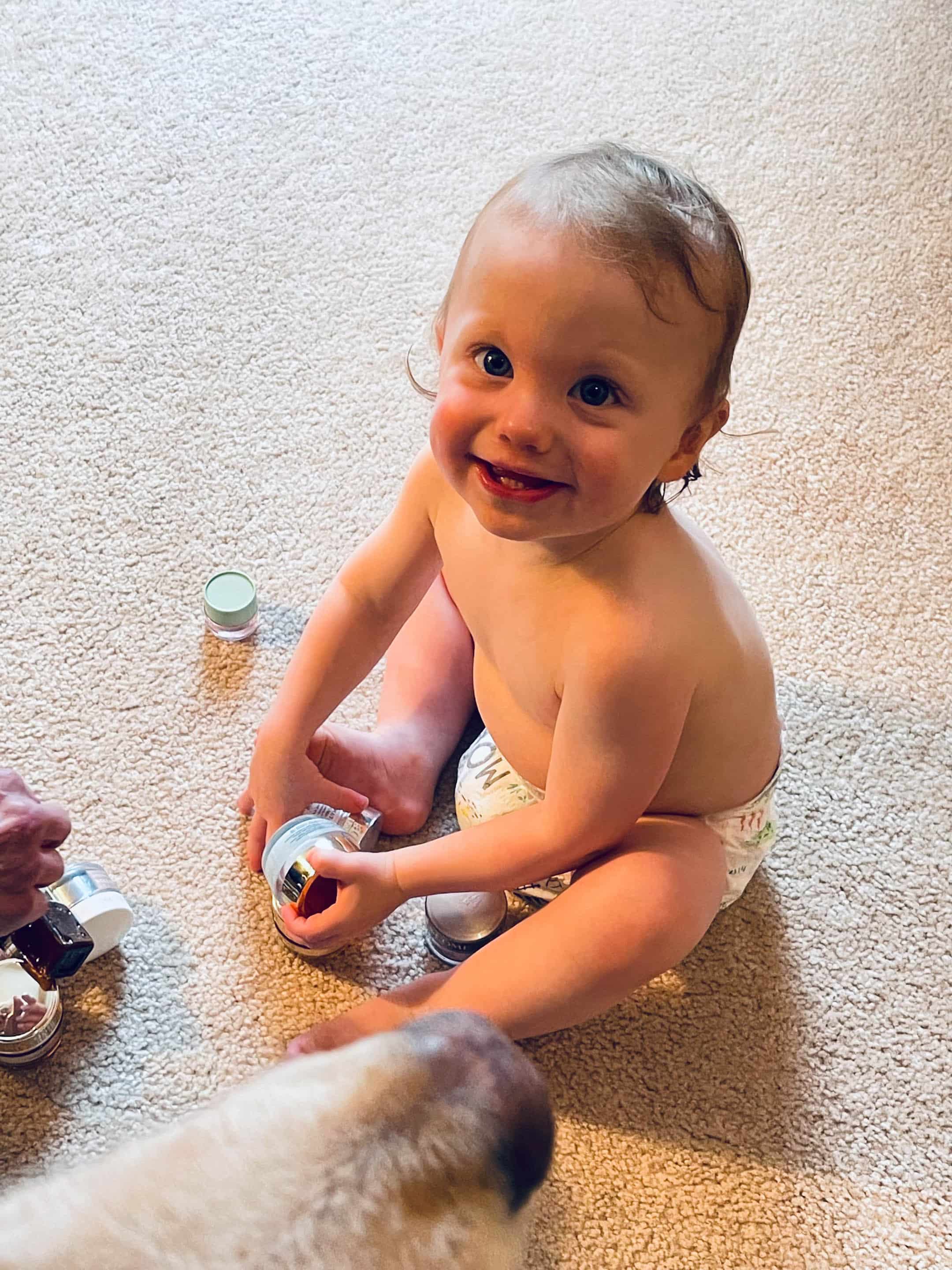 My mom washed and saved these face cream jars years ago – Max was obsessed with playing with them and now Jordan is too.