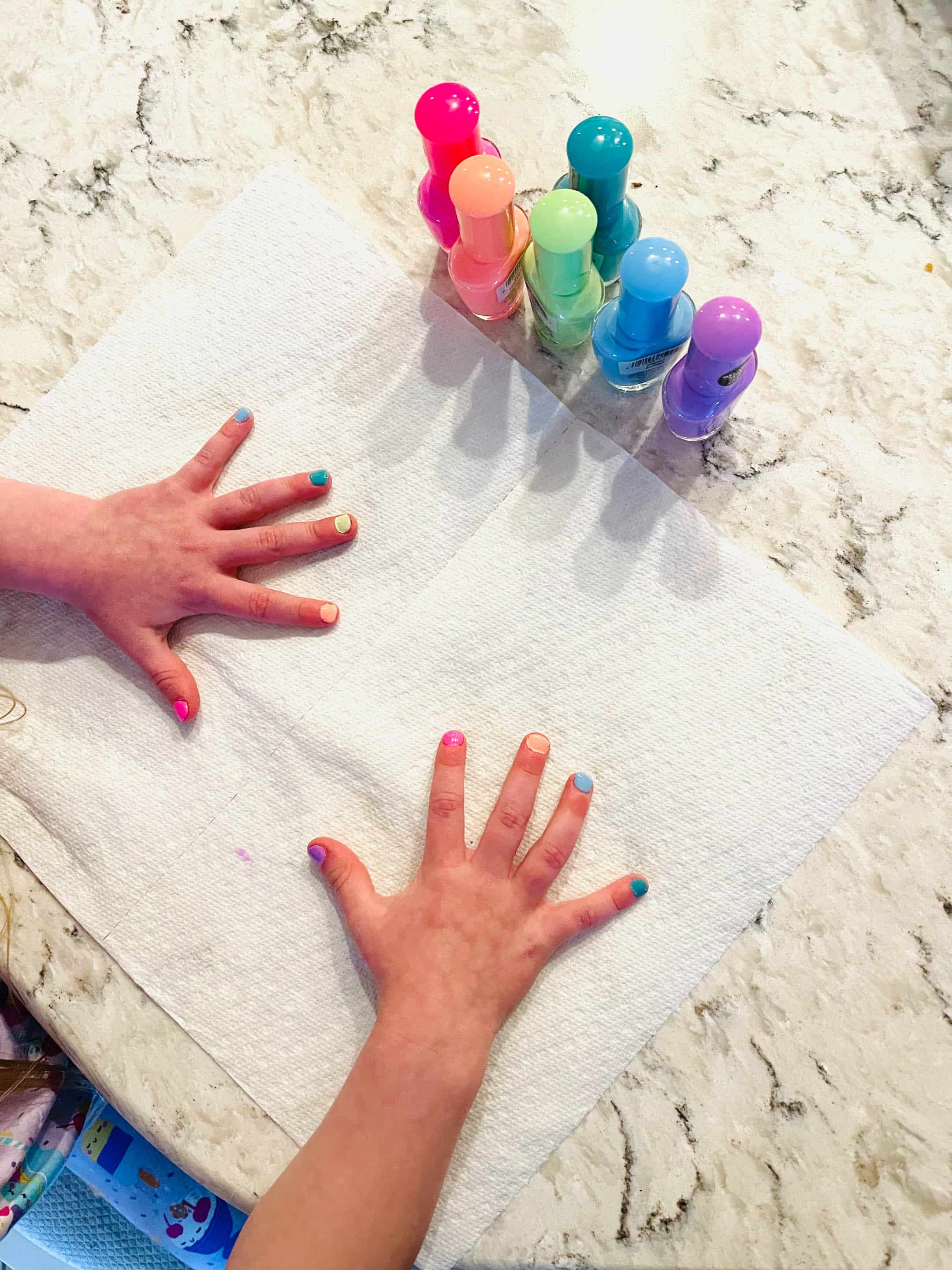 Manicure with her new neon nail polish.