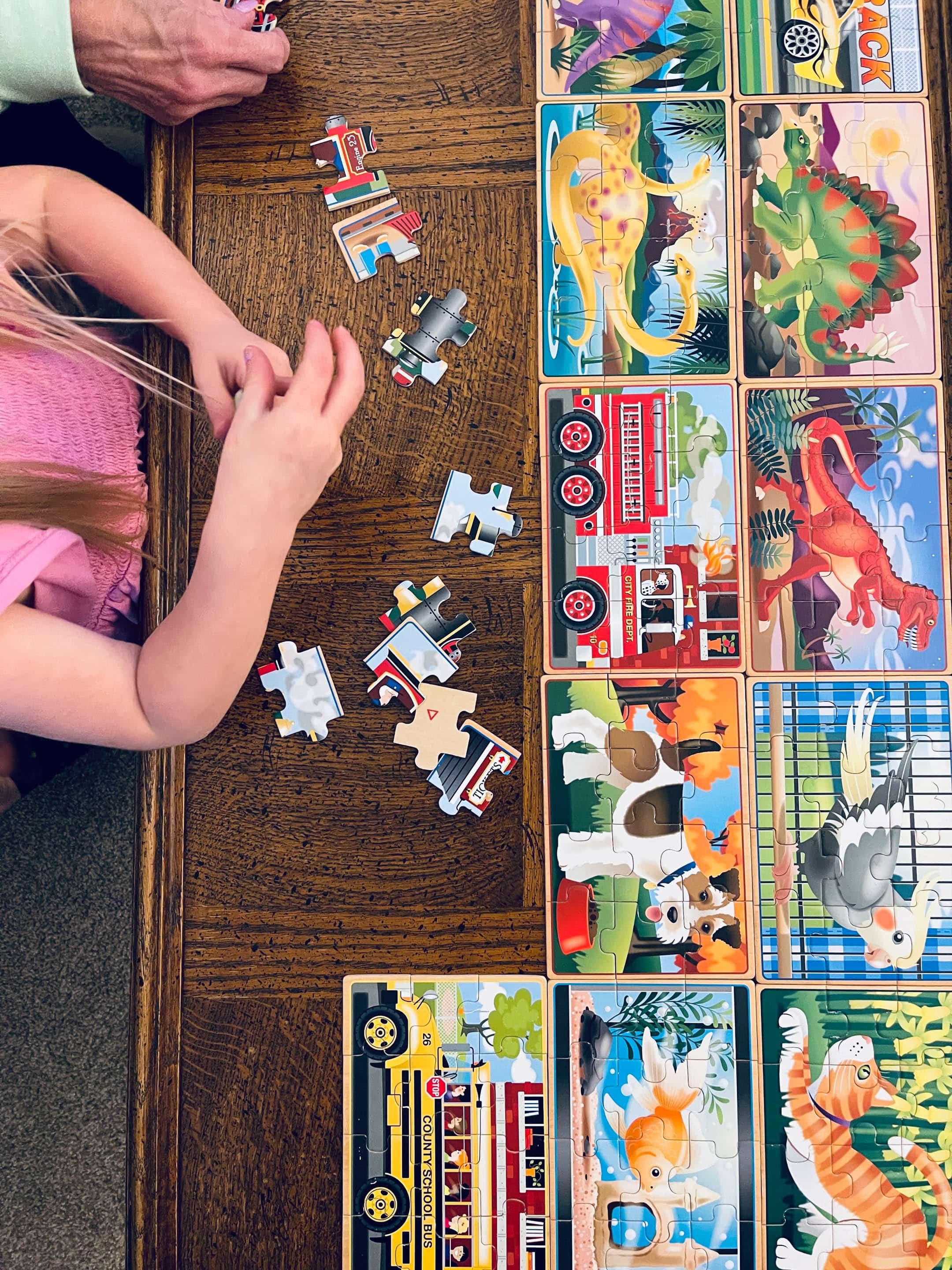 My daughter also loves puzzles. Where did you get the set Emilia is playing with, are the pieces wooden? Thanks!