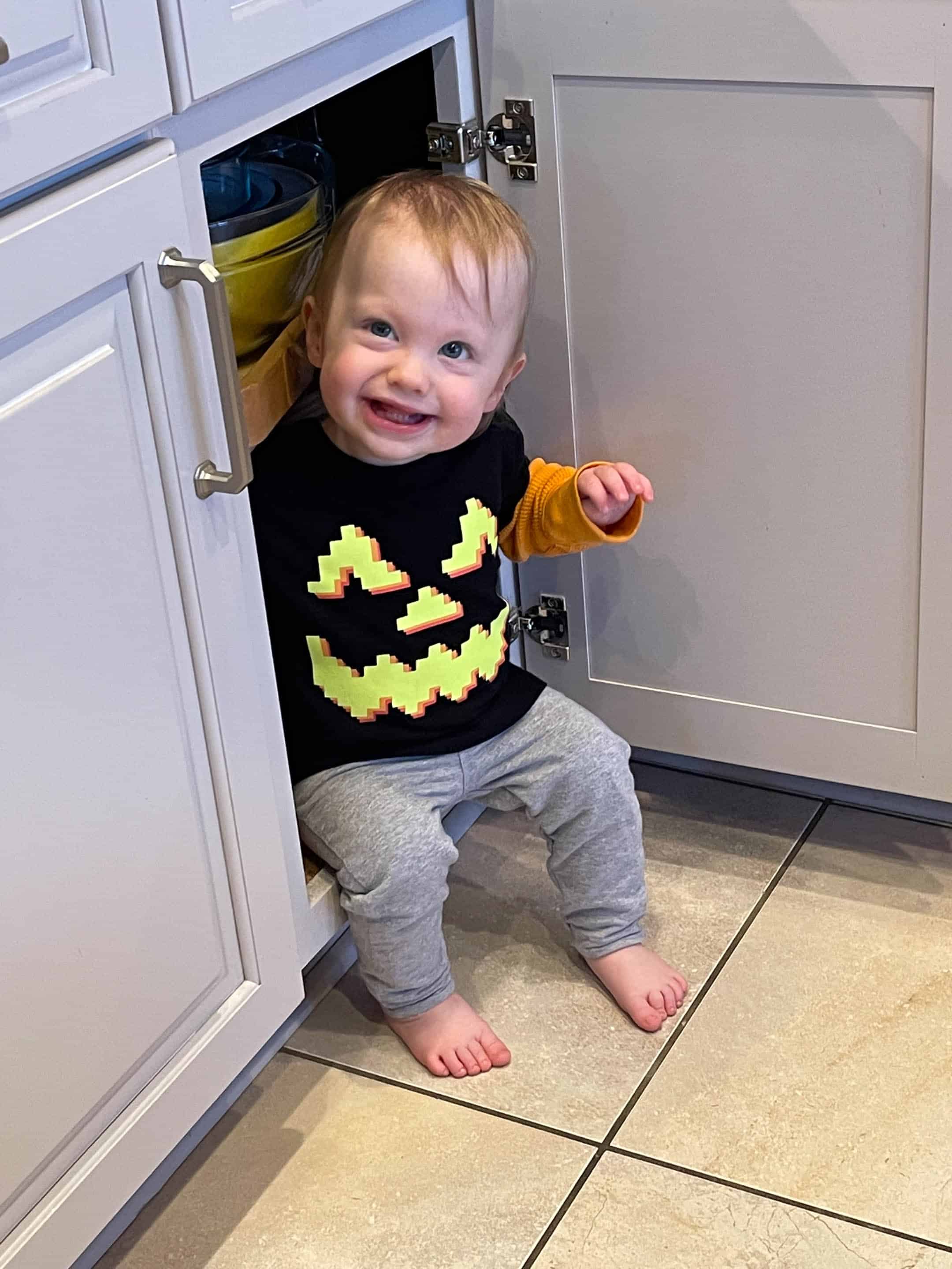 Jordan loves to sit in this cabinet. He will sit in here and babble to me while I cook.