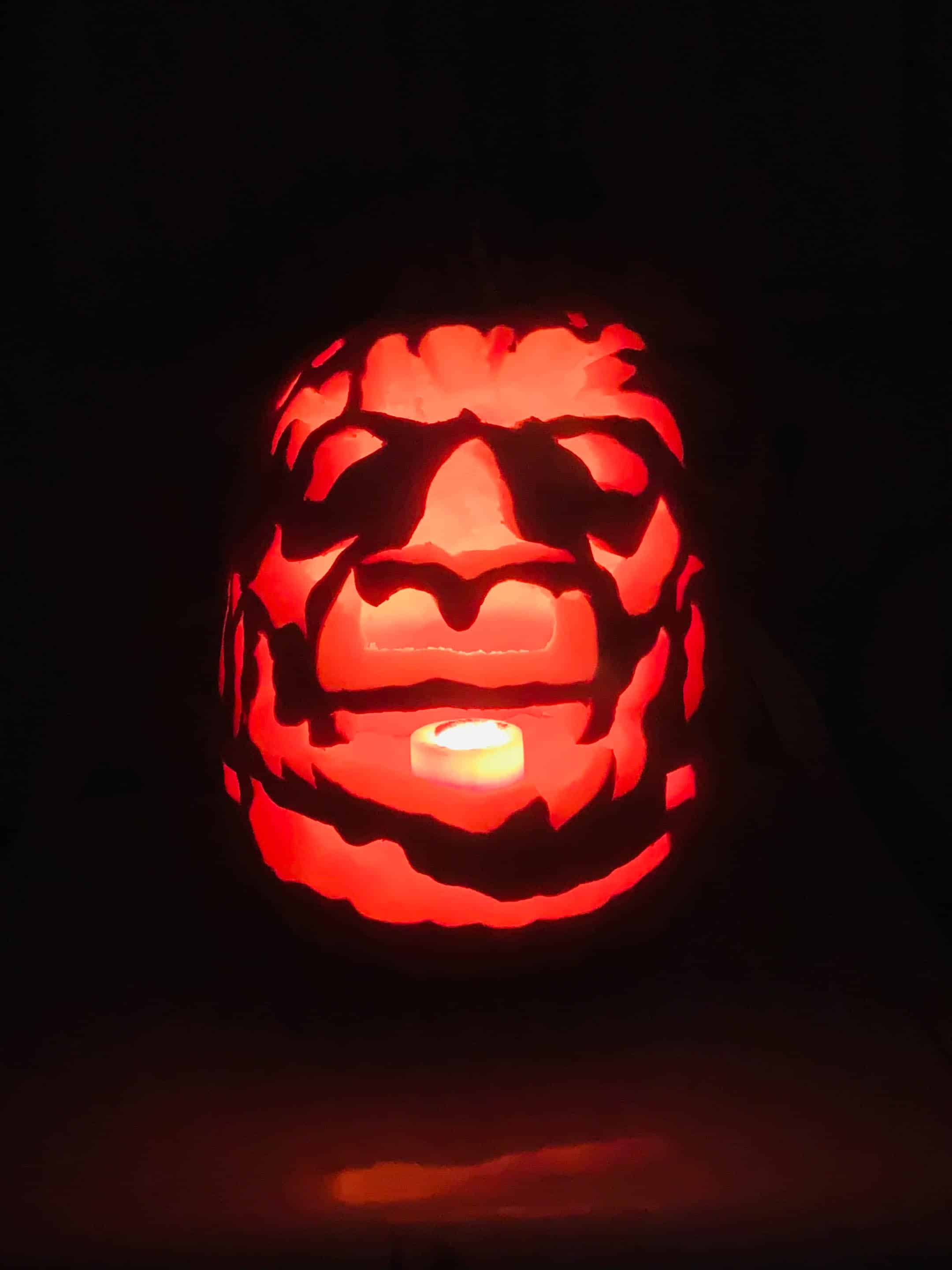 Eddie’s pumpkin carving station. I don’t even want to tell you that one of these fell off the table and shattered after this photo.