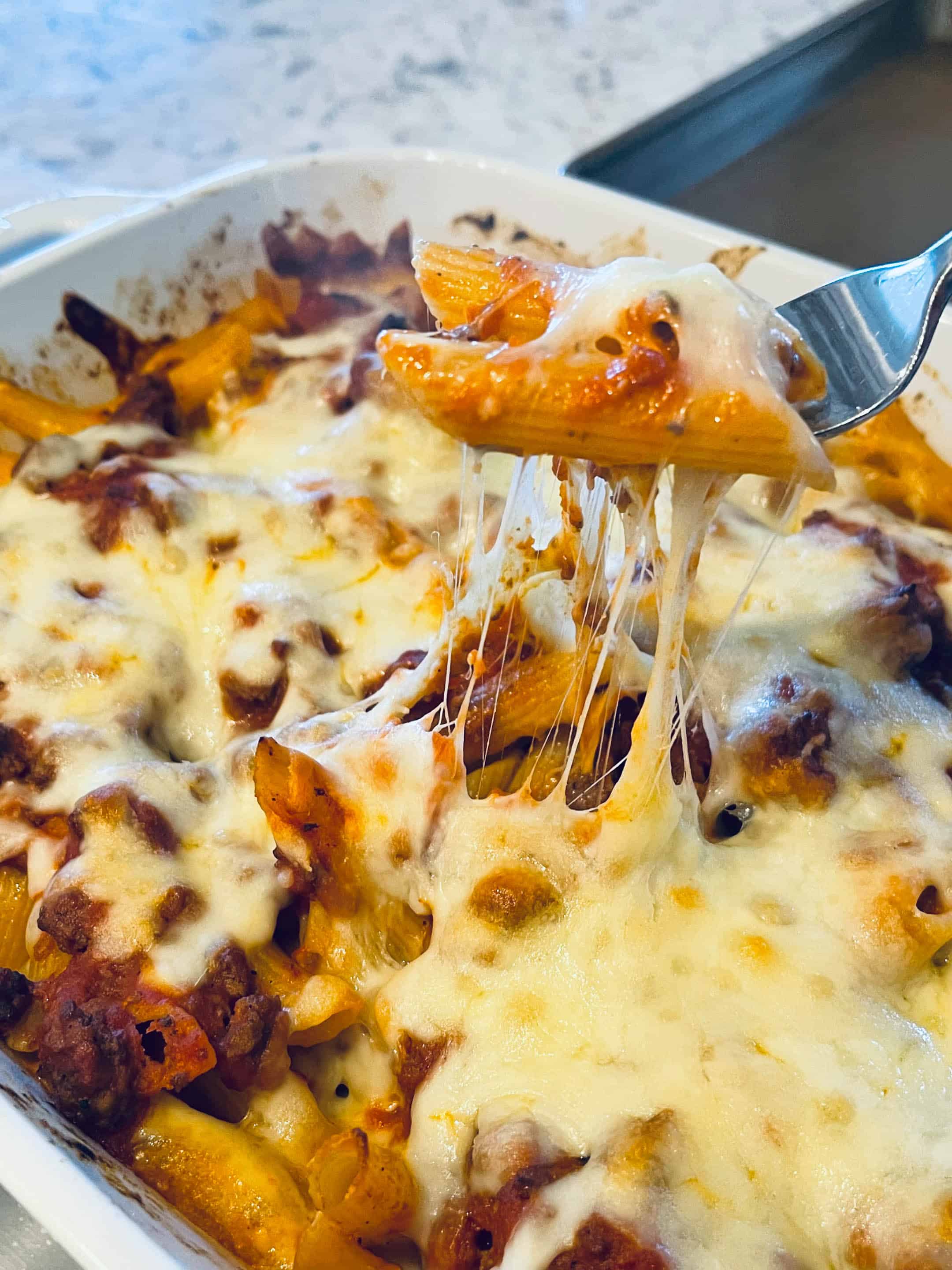 I threw together some random baked penne. Excellent with salad and garlic bread!