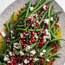 This crisp green bean salad is topped with so many of my favorite things, like tart pomegranate jewels and a vinaigrette that is practically drinkable.