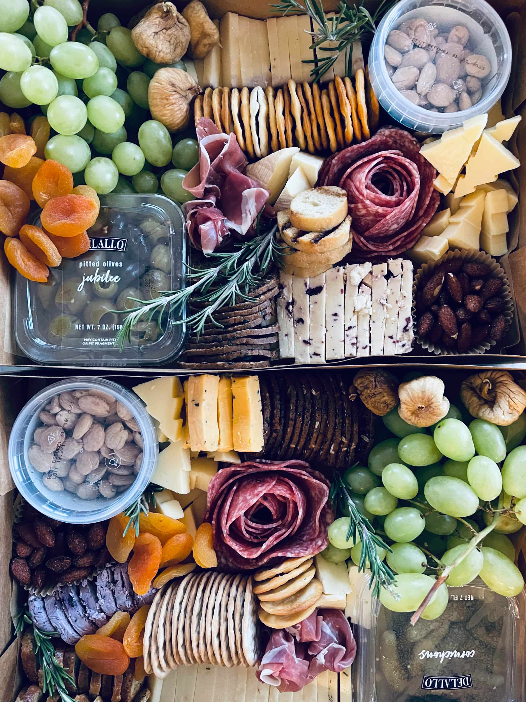Last year I made charcuterie trays for the teachers. This year, I made them in boxes! I delivered a few to the school a bit before lunch time. I like doing this over cookies because everyone gets tons of sweets during the season.