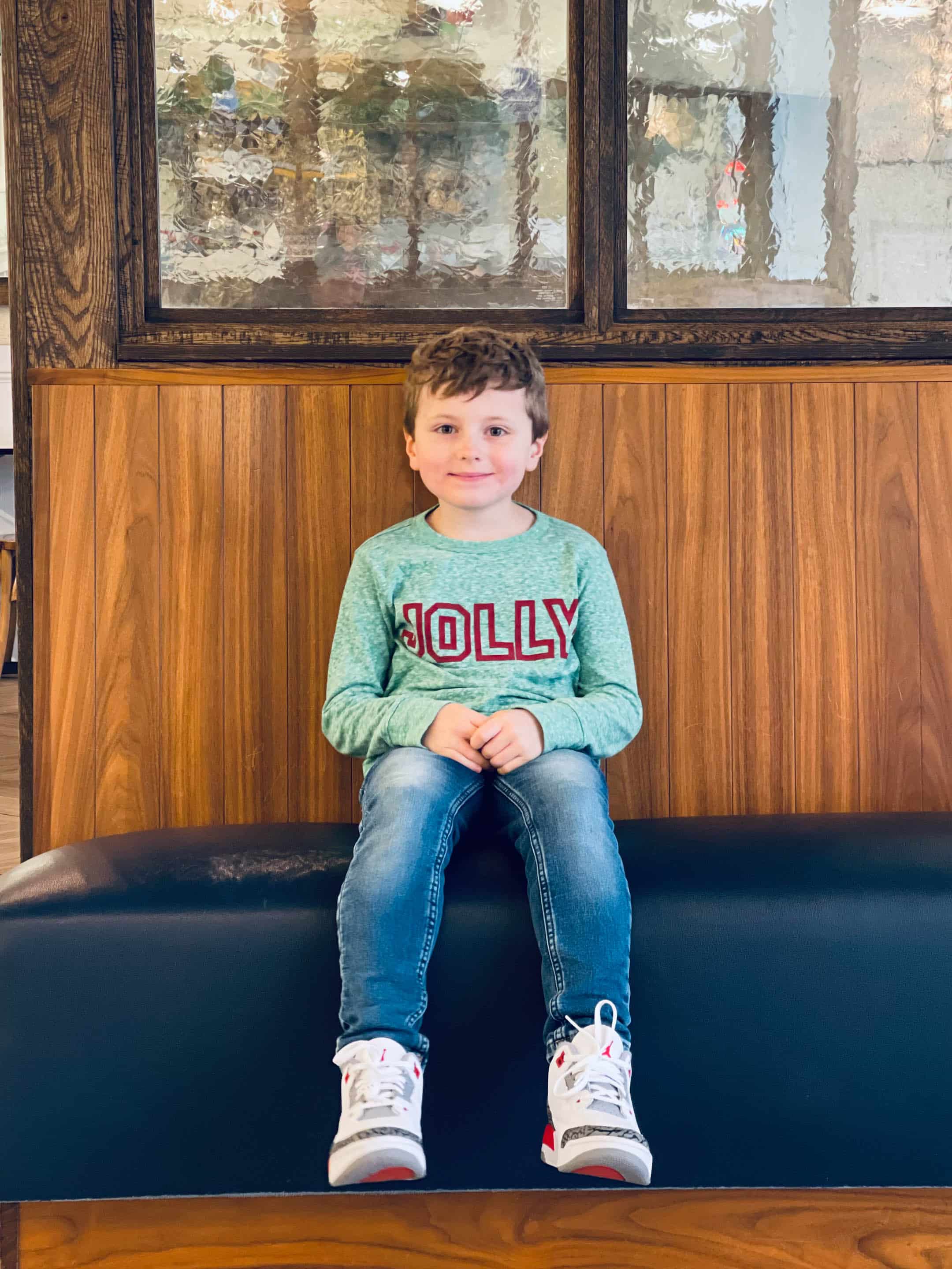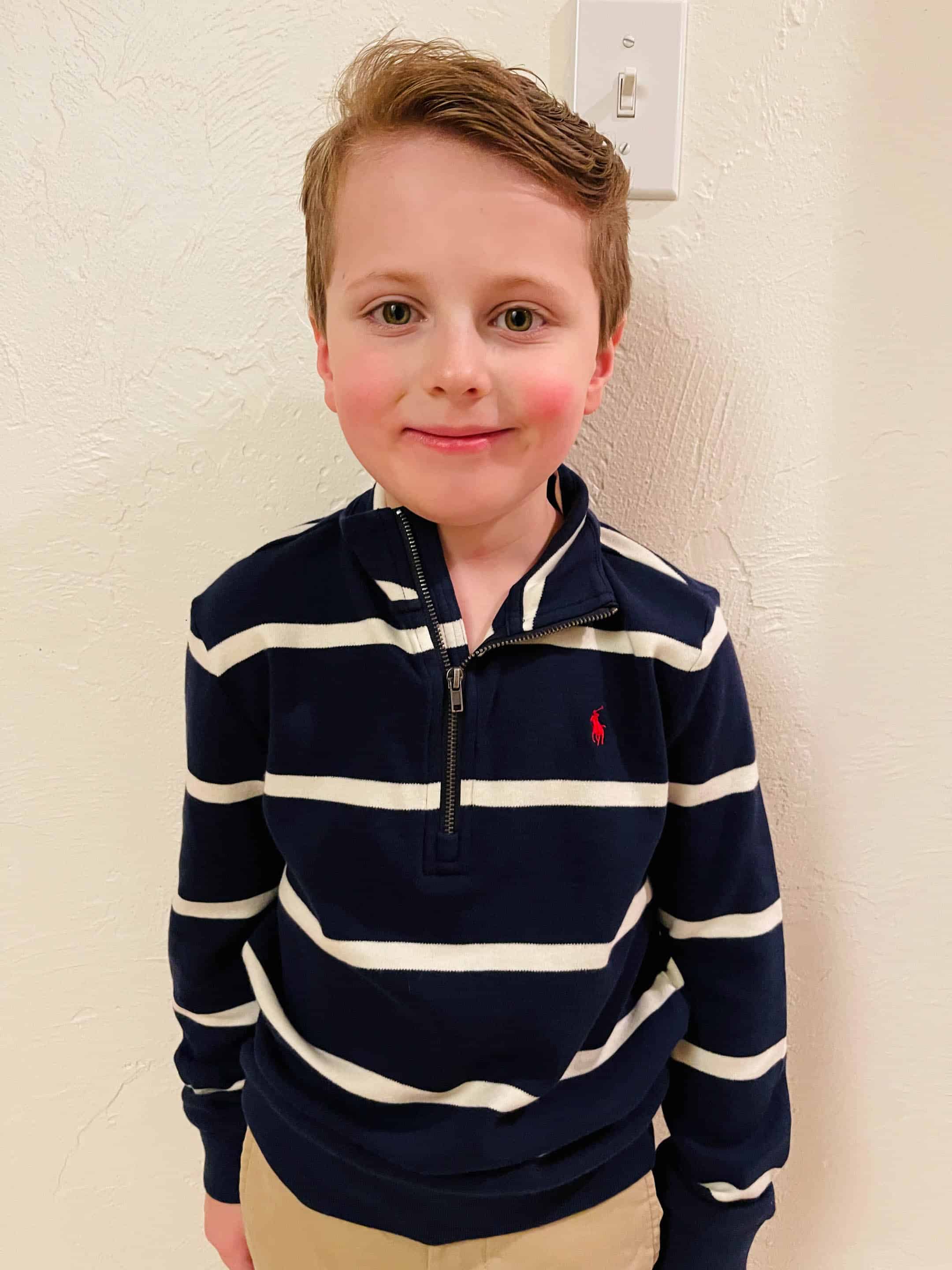 Jordan’s sweater was Max’s in 2016. I bought one larger for him in 2018 so Emilia could wear the smaller one. I love this sweater so much!! It’s from Hanna Anderson but they no longer carry it.