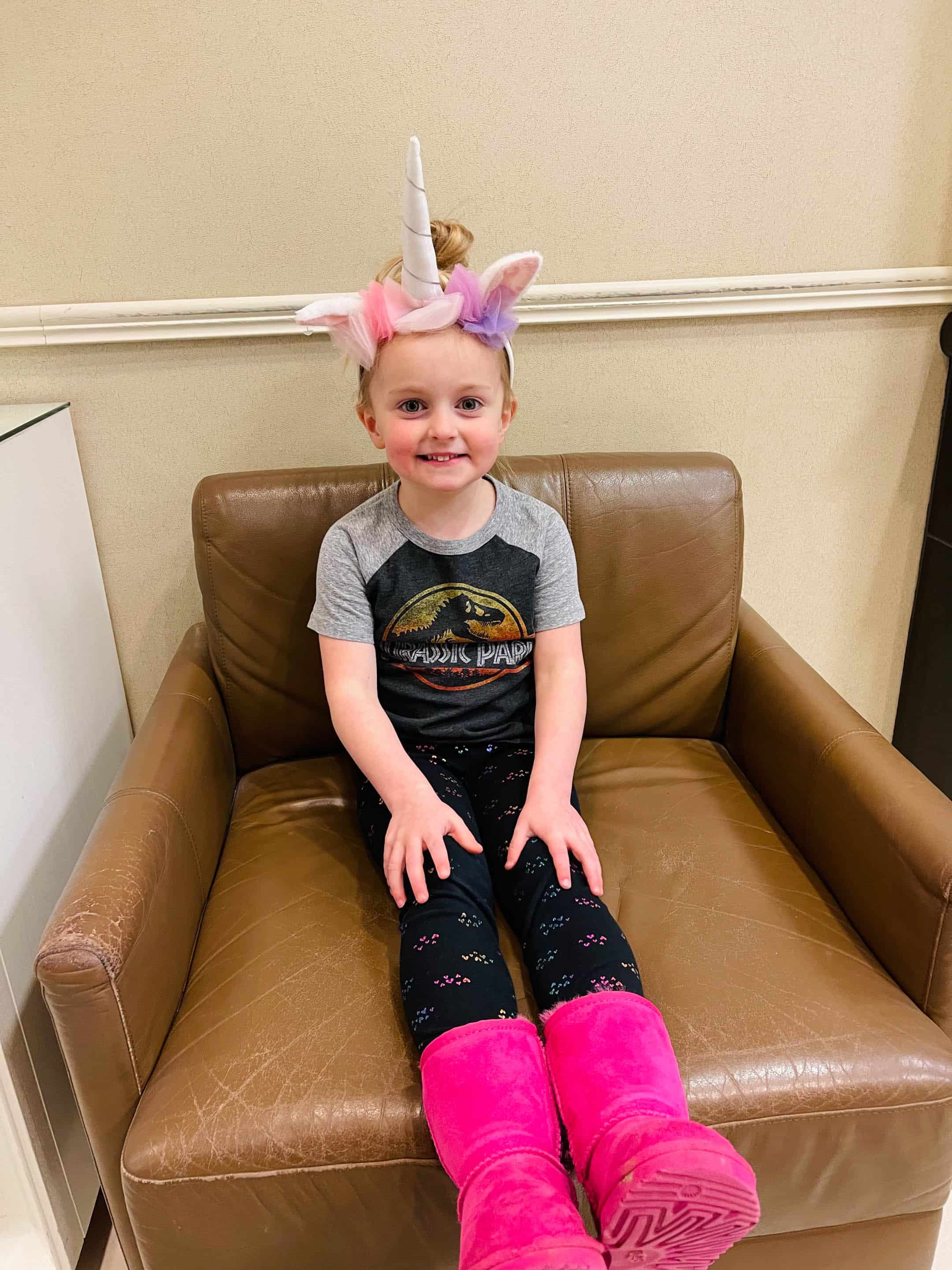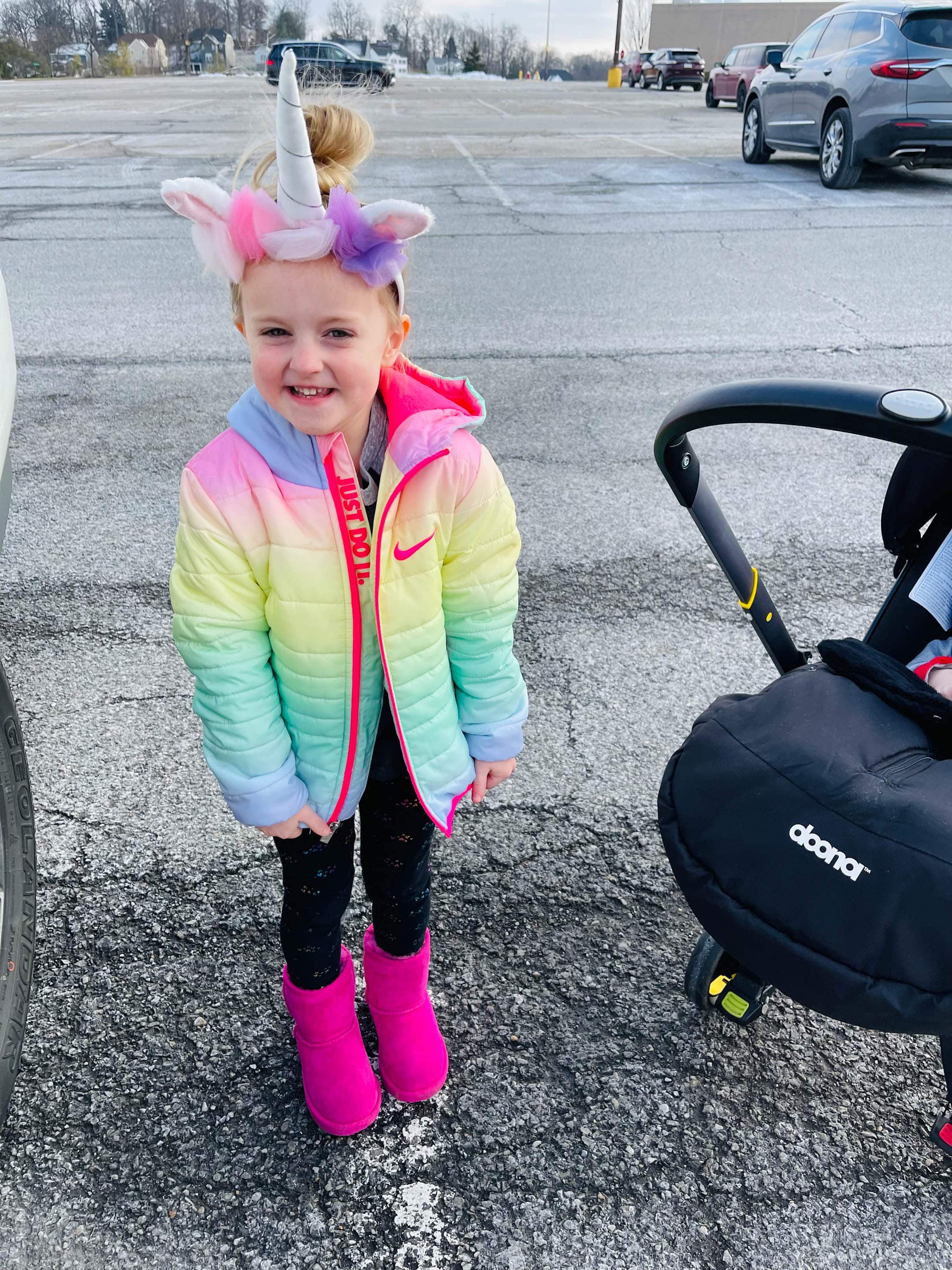 Emilia, Jordan and I ran to the mall. She was thrilled I let her wear her unicorn horn.