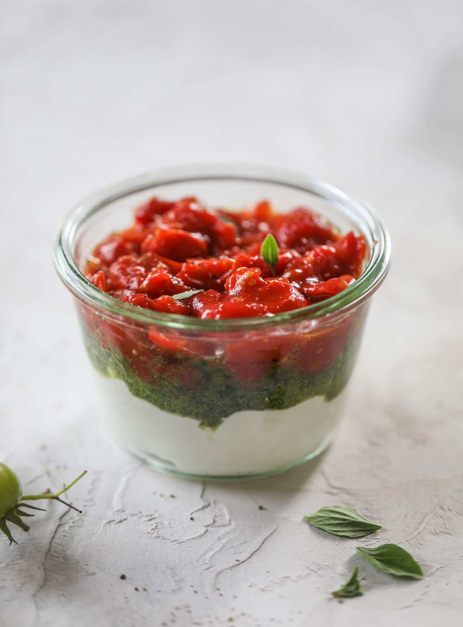 This is technically a summer recipe, but with store-bought pesto and the quick tomato jam, it’s great for the holiday season. Please the red, white and green is just SO festive! Serve with crackers or crackers, fresh bread or crostini.