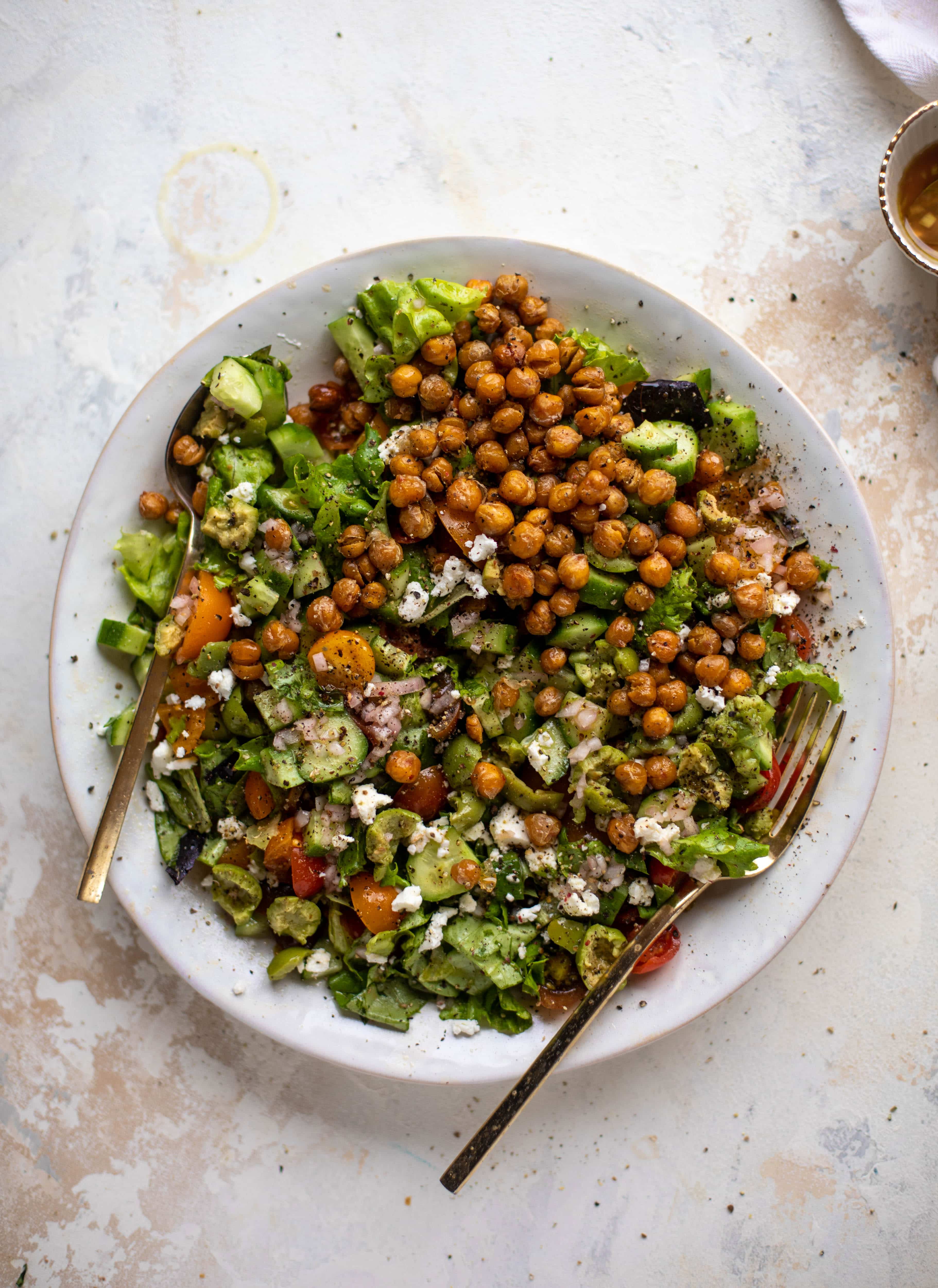 This chickpea chopped salad is super flavorful. A great base for anything else too.
