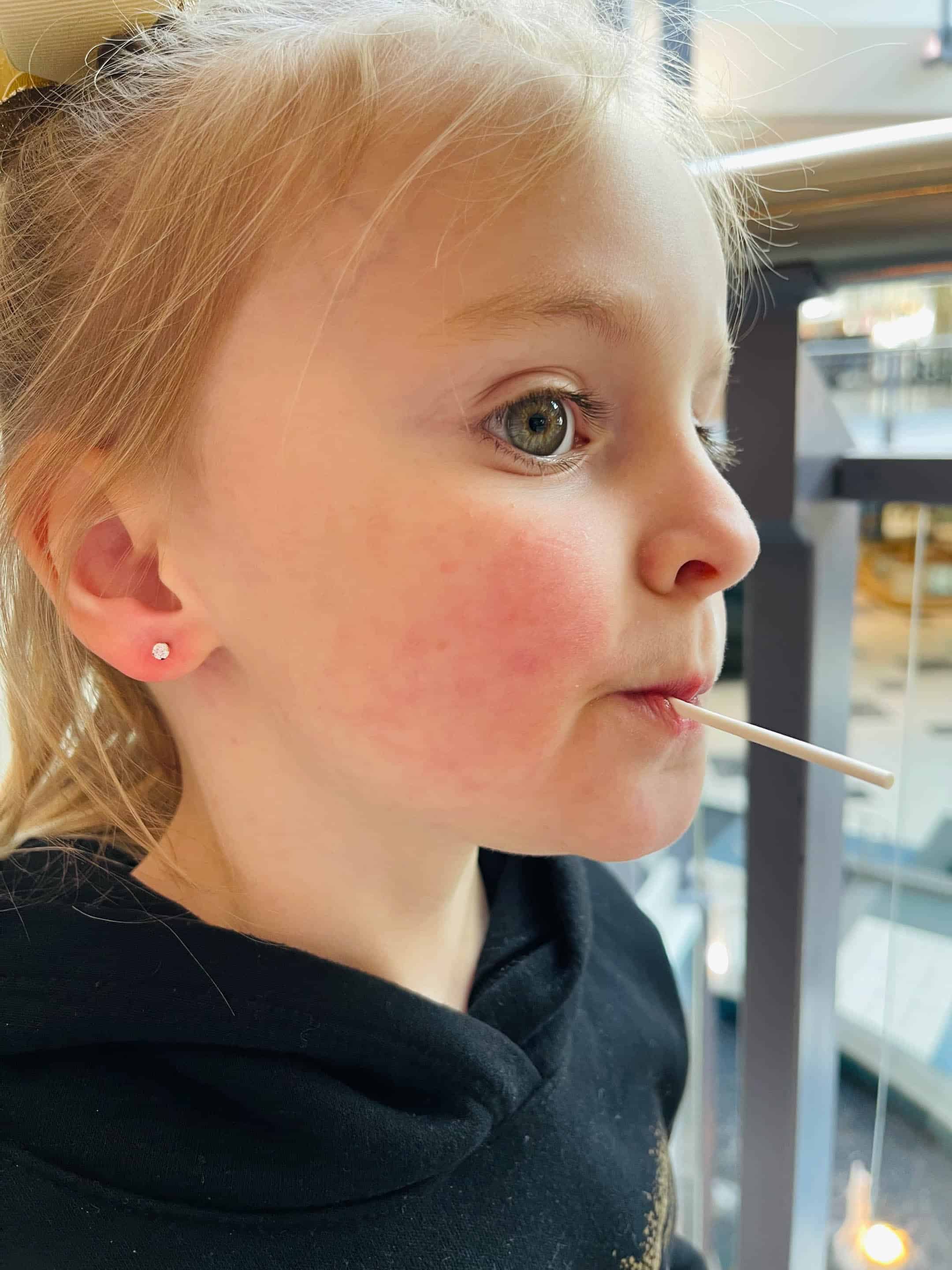 Then she went. Not a tear was shed. She has been asking for a while to get them pierced. It was so fun.